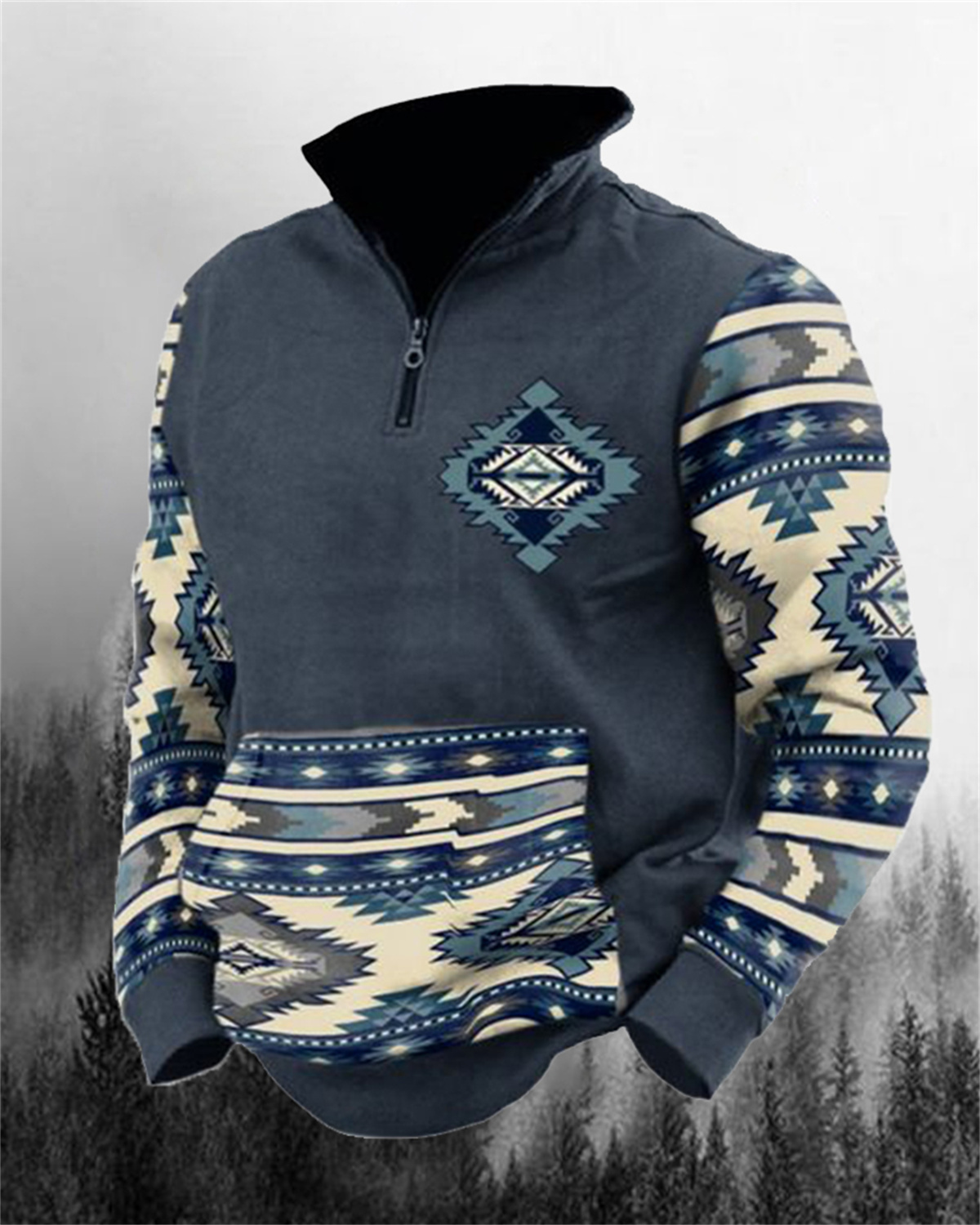 Men's Fleece Southwestern Ethnicity Zipper Hooded 00393