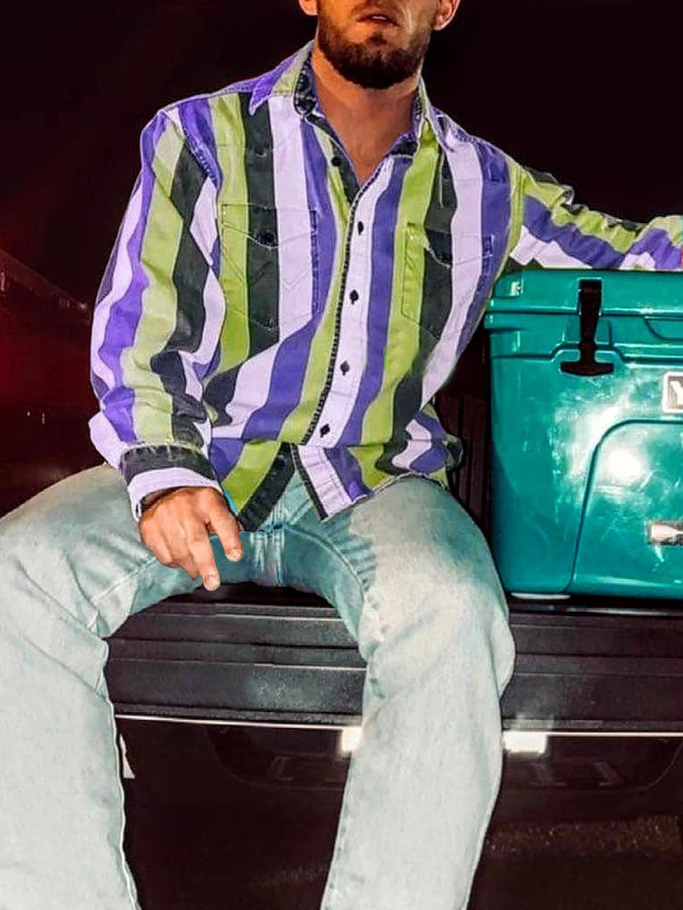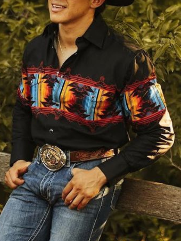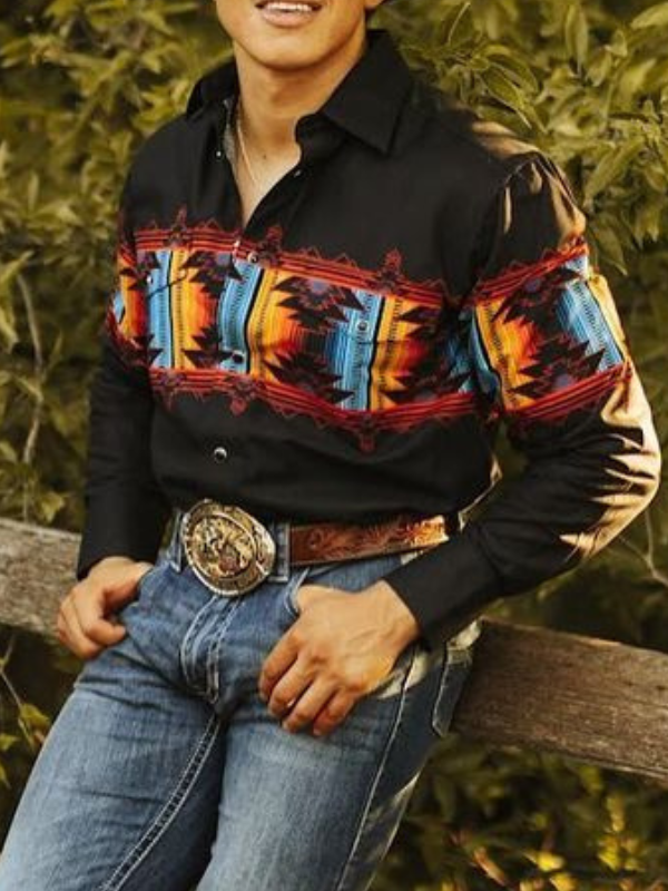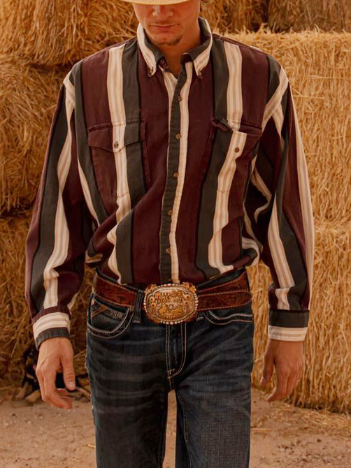 Men's Vintage Western Cowboy Stripe Shirt