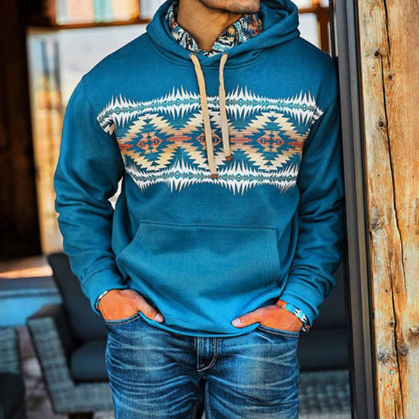 Men's Casual Western Tribal Print Patchwork Hoodie