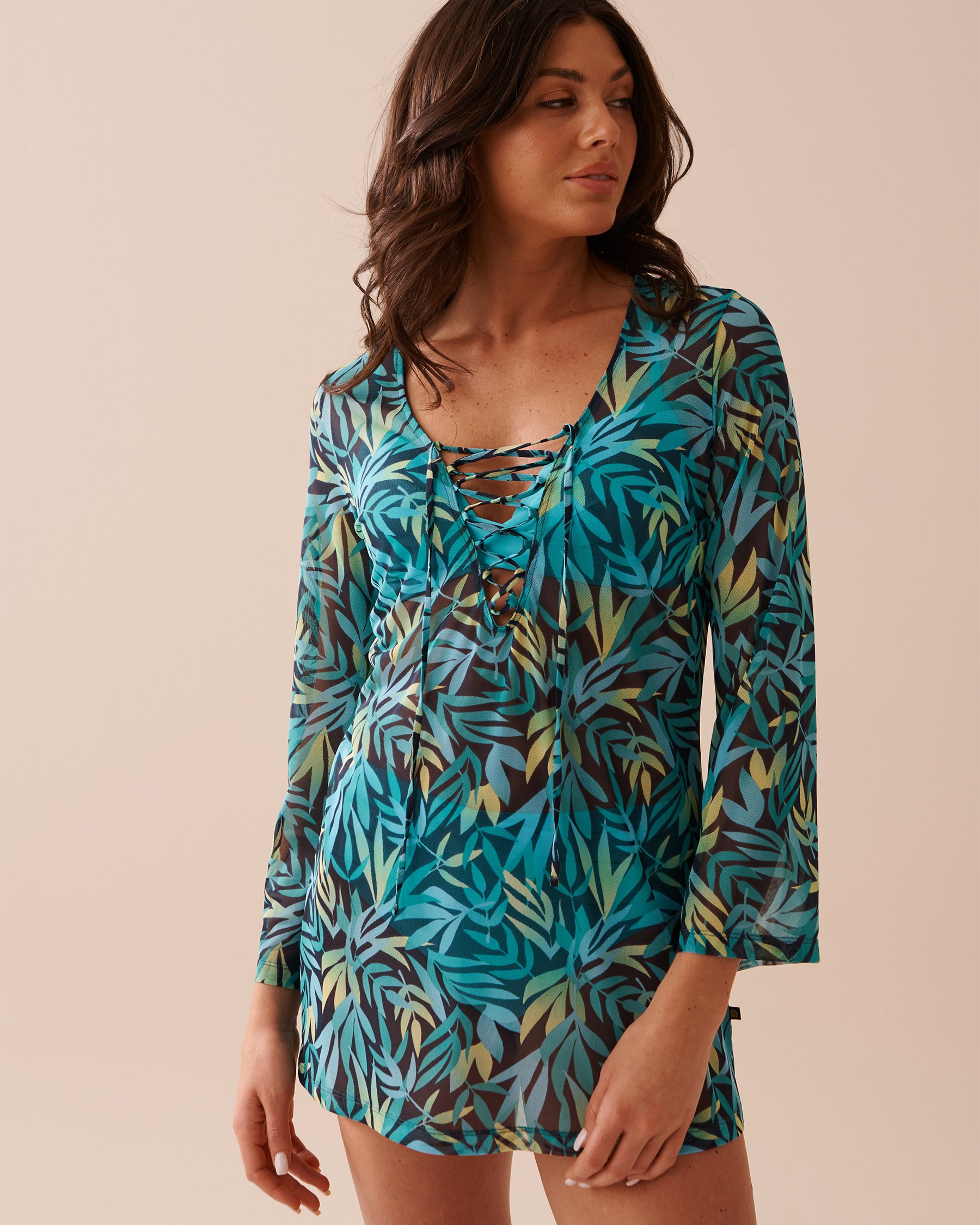 AQUA GREEN Recycled Fibers Plunge Bikini Top