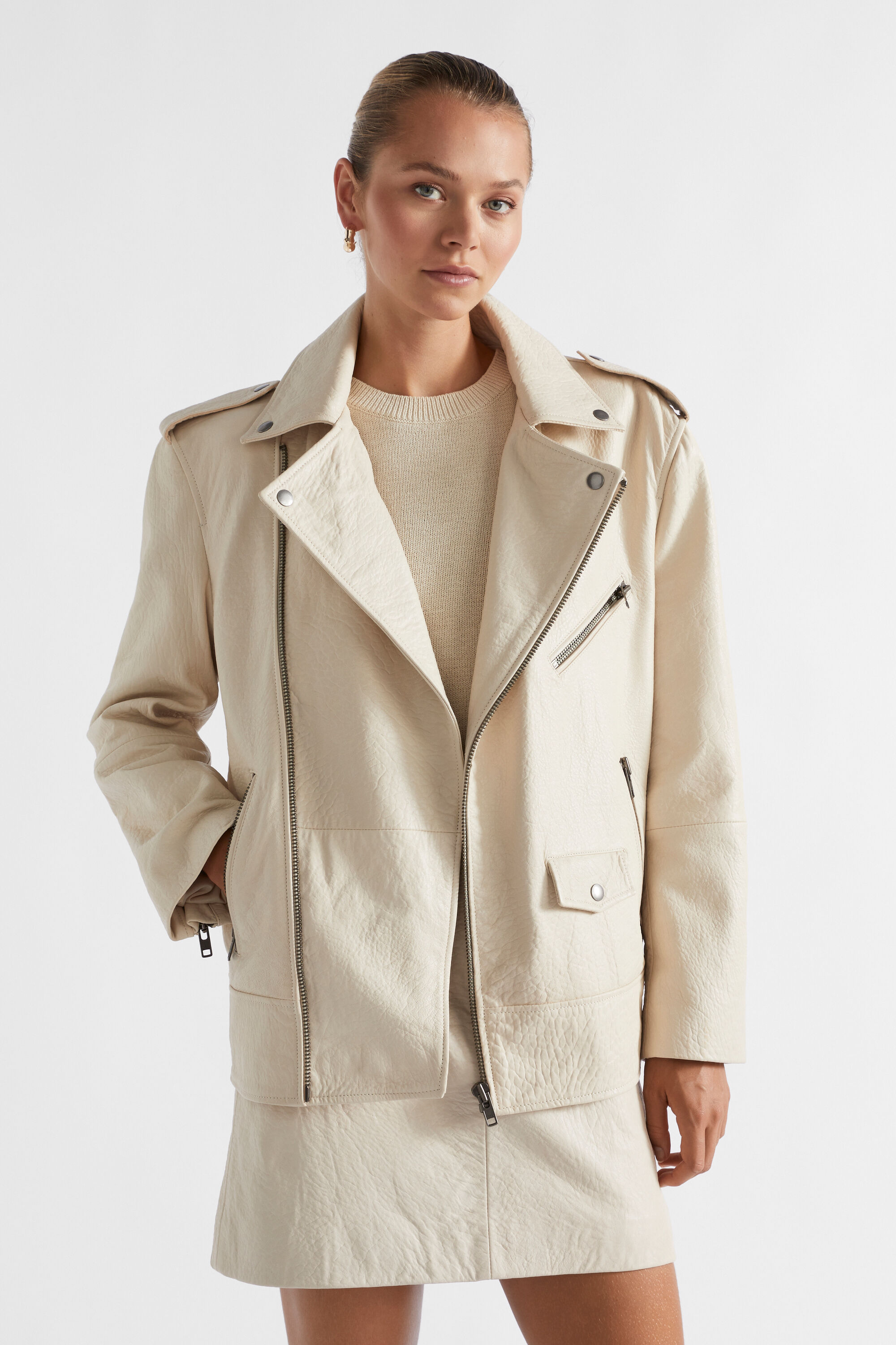 Pebbled Leather Biker Jacket