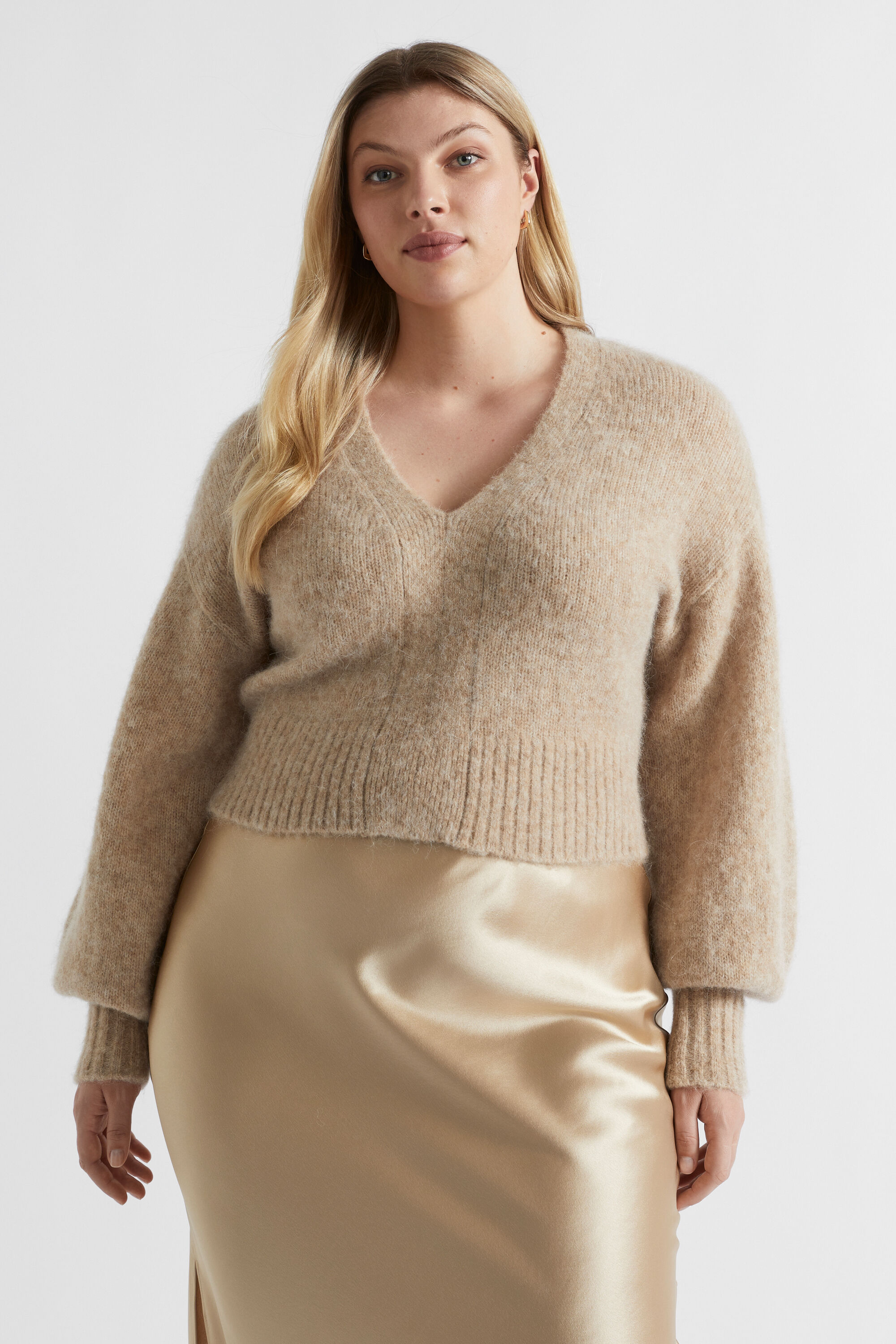 Wool Blend V Neck Knit