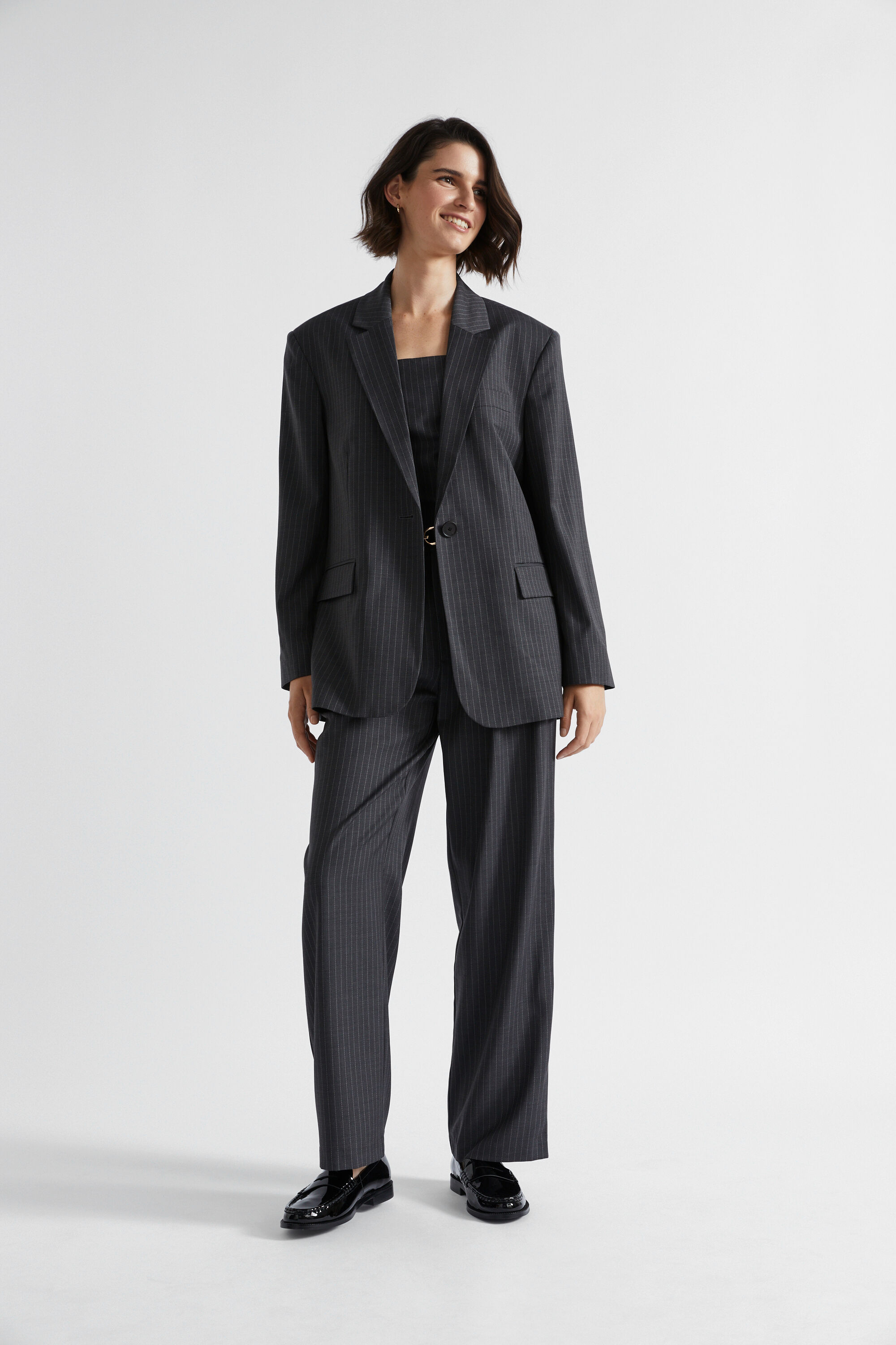 Wool Blend Pinstripe Blazer