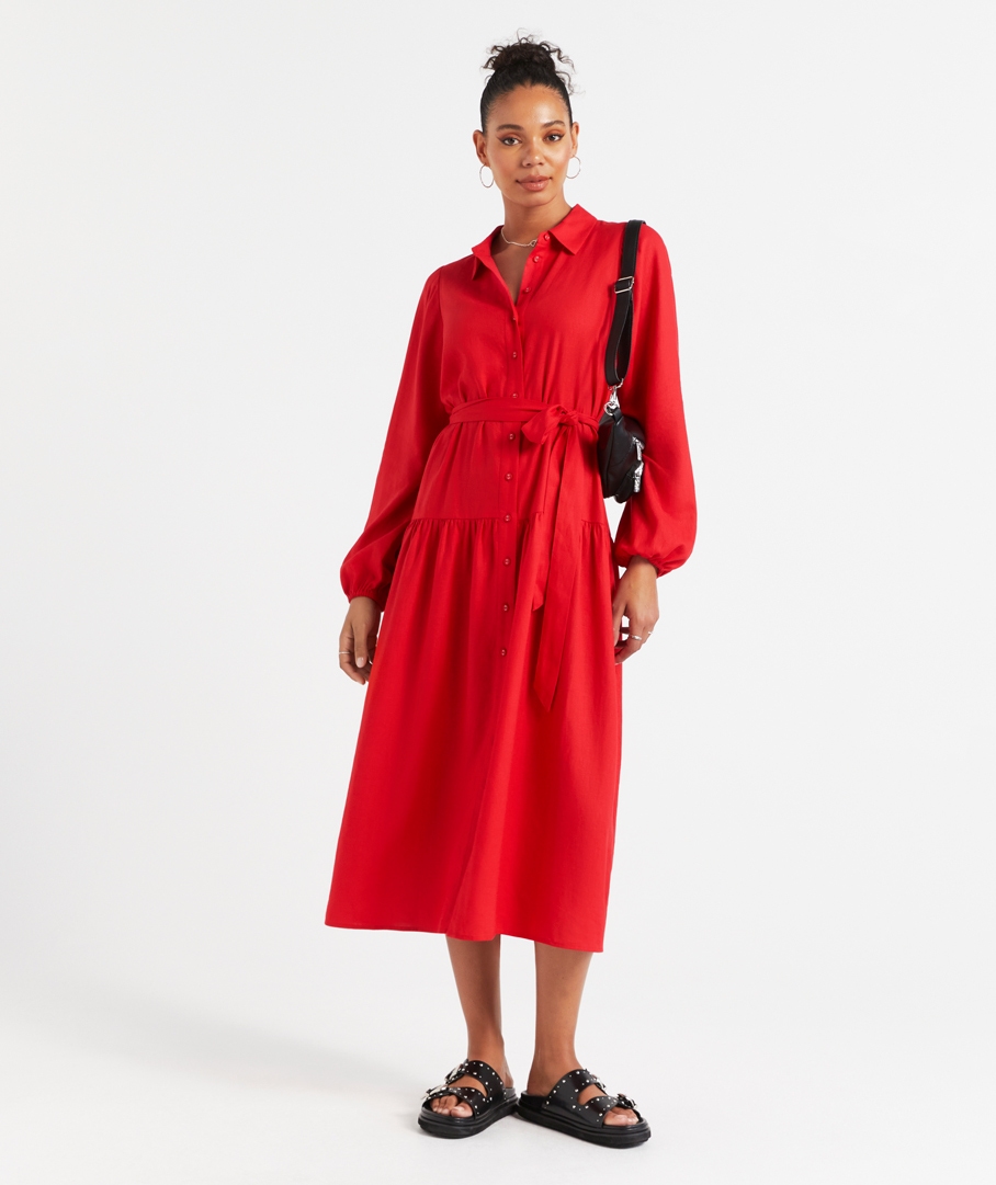 FATIMA LINEN BLEND SHIRT MIDI DRESS