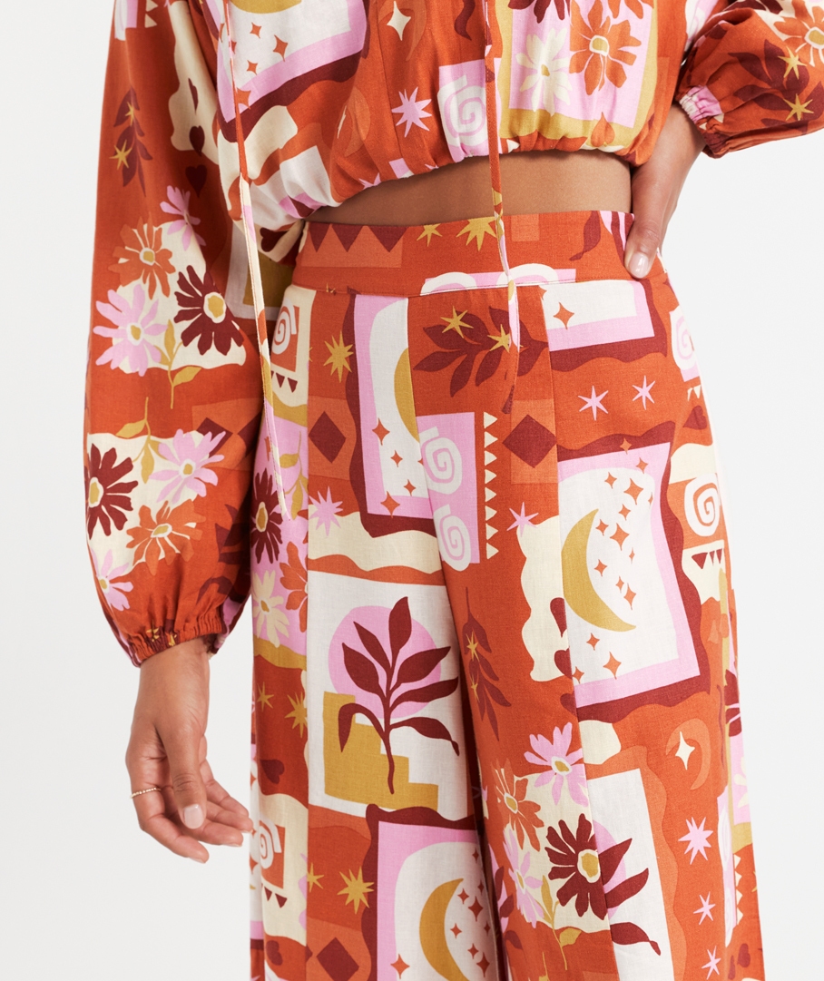 LEYLA LINEN BLEND PRINTED PALAZZO PANT