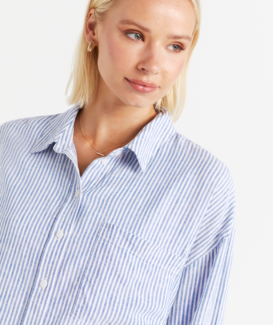 THE LINEN BLEND OVERSIZED STRIPE SHIRT