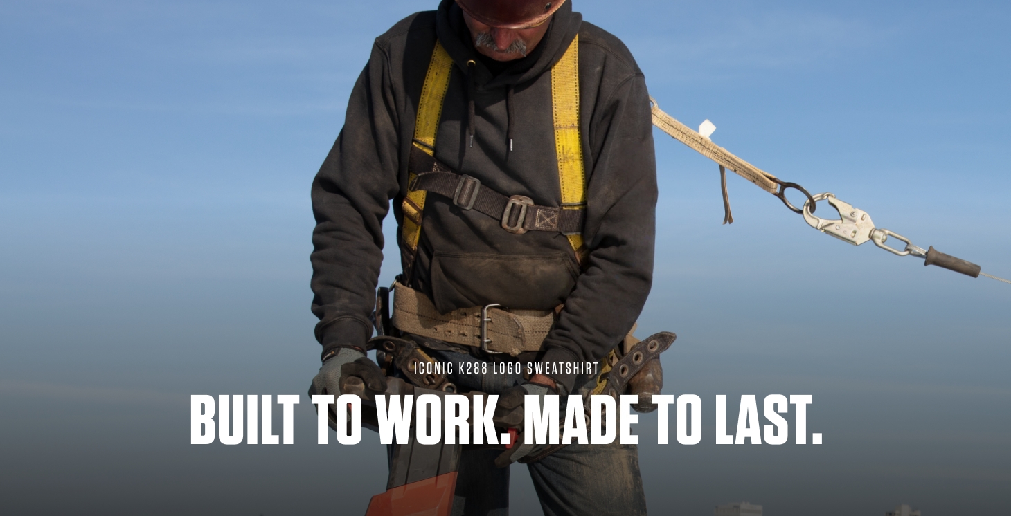 Durable, hard-wearing workwear can be as comfortable as it is dependable with the iconic K288 men’s graphic sweatshirt. The tough-as-nails cotton blend material is soft against the skin, while the loose fit makes layering easy for season after season of use. A rib-knit cuff and waist, drawstring hood, and front handwarmer pocket help you stay even warmer as the temperature drops. Gear up for wherever your work takes you with the versatile K288 logo hoodie.