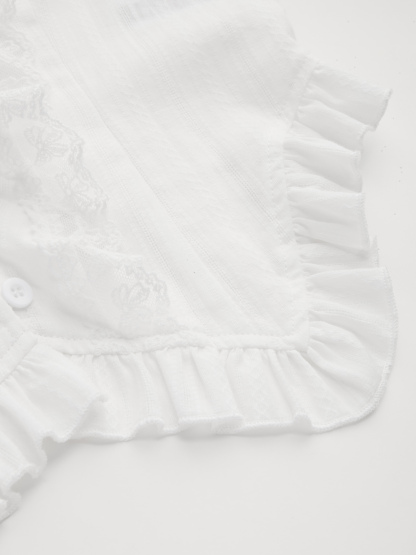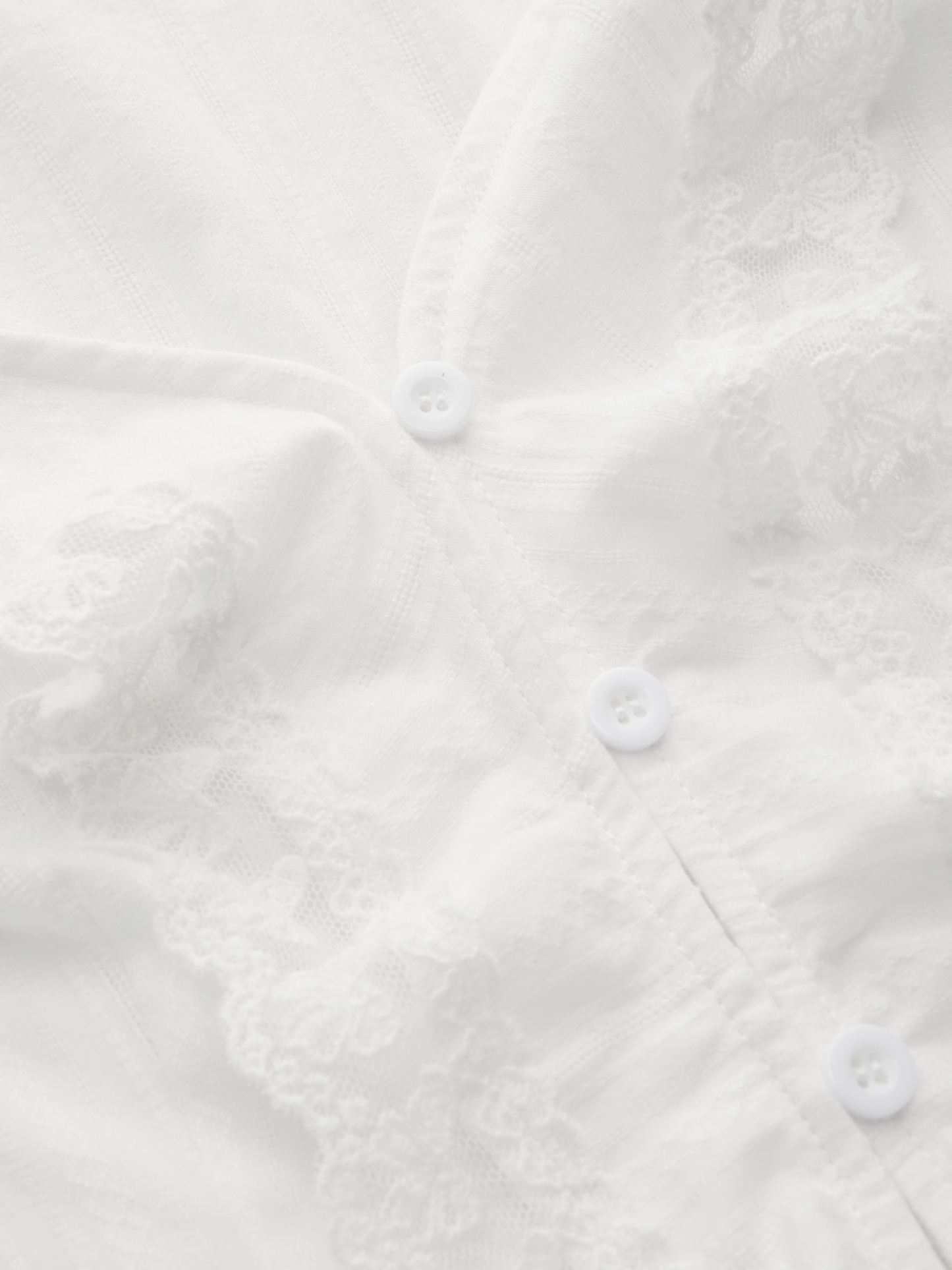 Composition: 100% Cotton Stretch: Non Fit Type: Oversized Fabric Thickness: Moderate Fabric Sheerness: Semi-transparent Occasion: Date Pattern Type: Solid Length: Crop Material: Woven Neckline: V-neck Clothing Detail: Bowknot, Lace