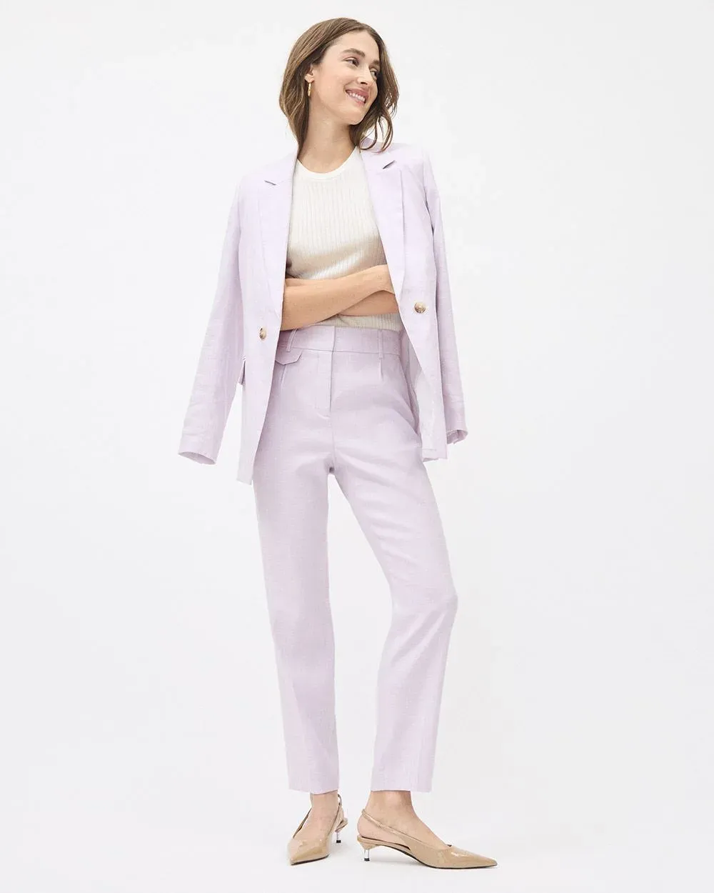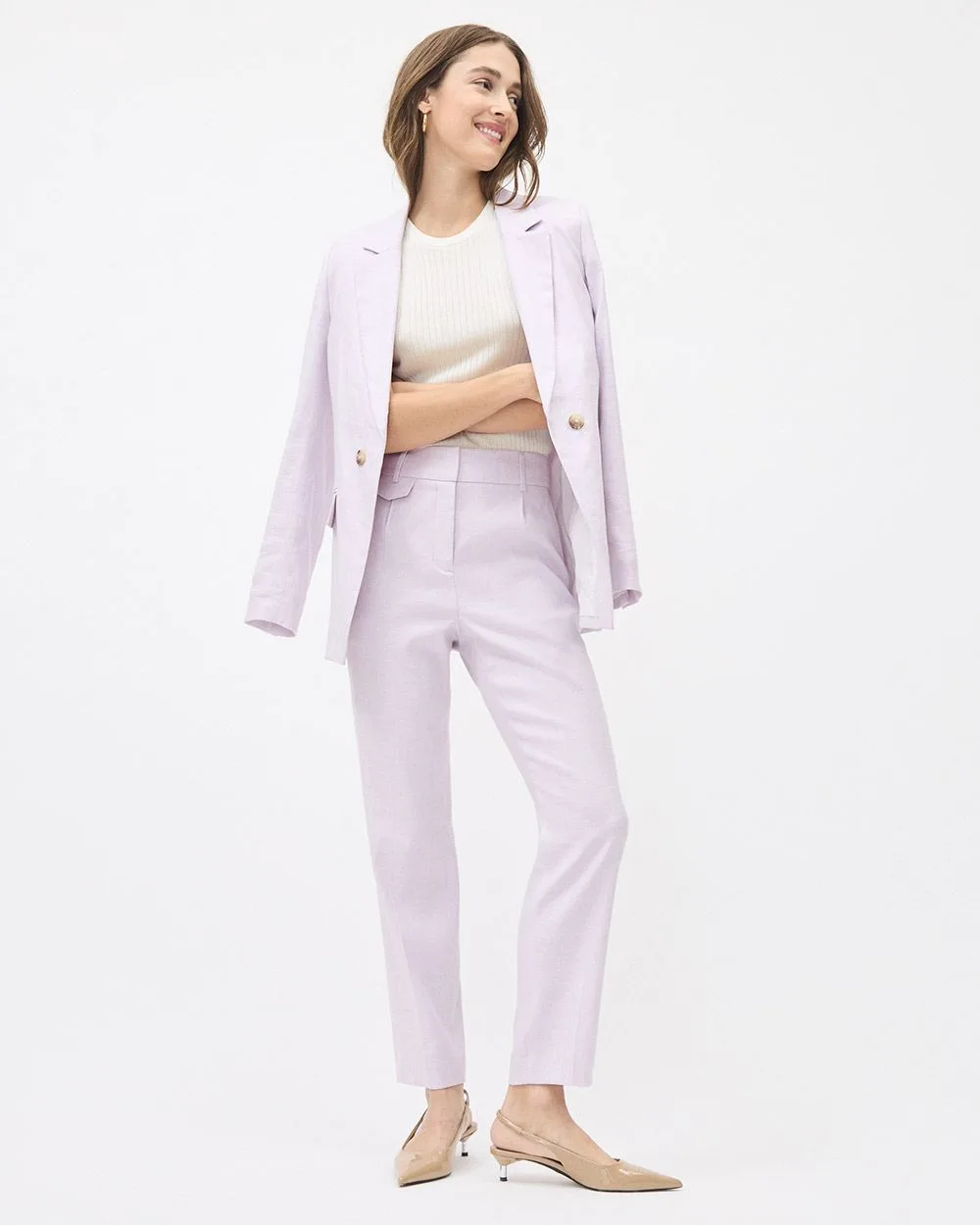 If linen is your favourite summer fabric, then this chic tapered-leg pant featuring a high-rise was made for you. Matching blazer available.
