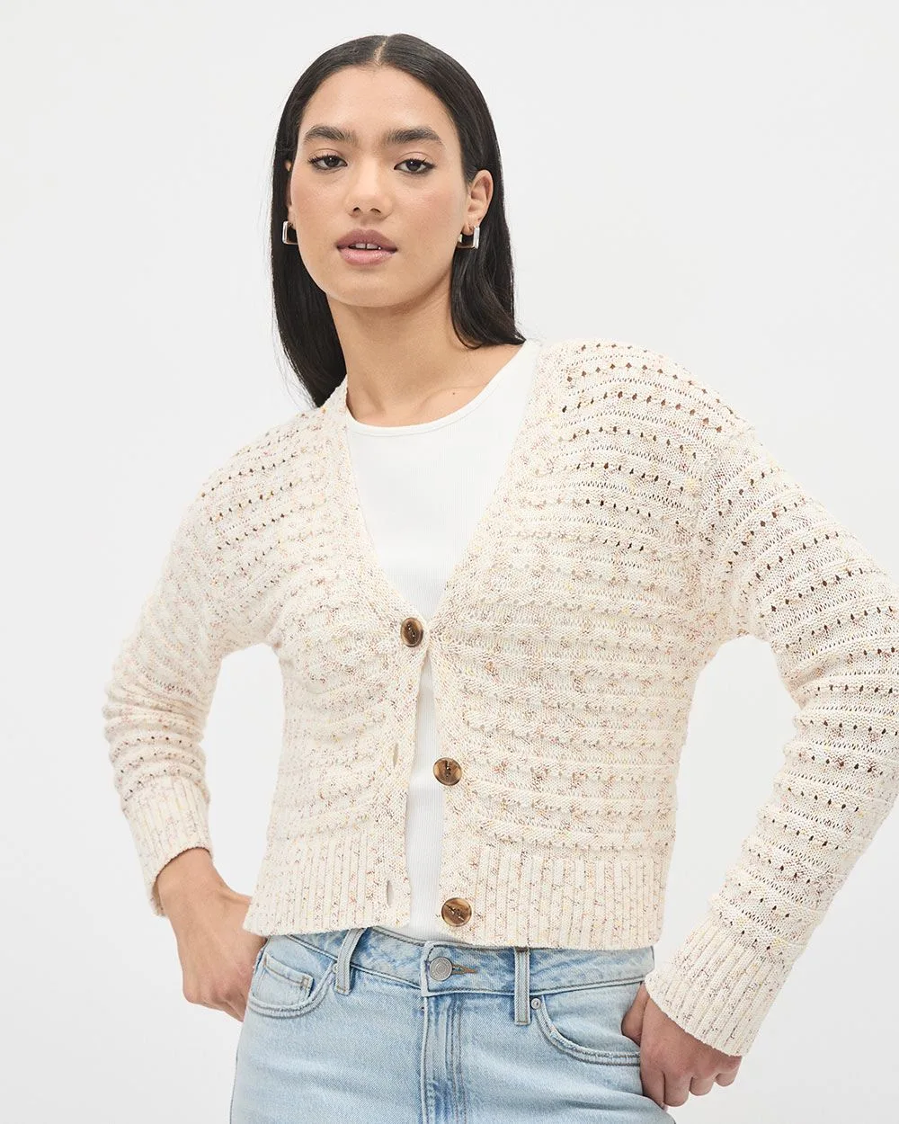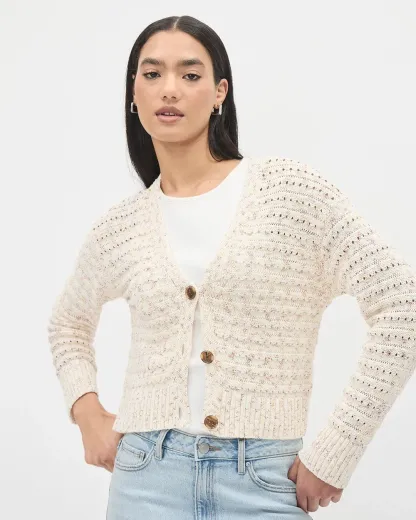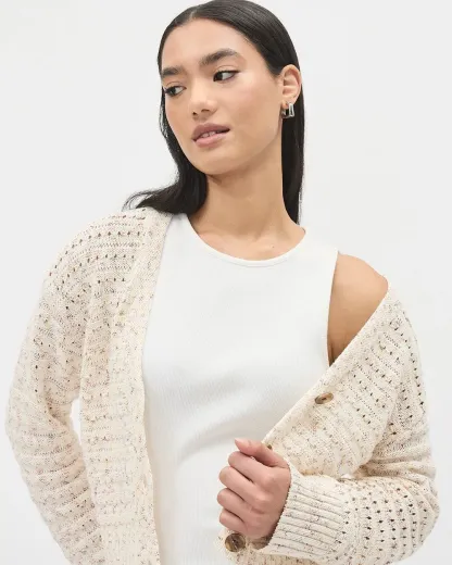 Made in light crocheted stitches, this buttoned-down cardigan will add a trendy twist to your summer outfit.