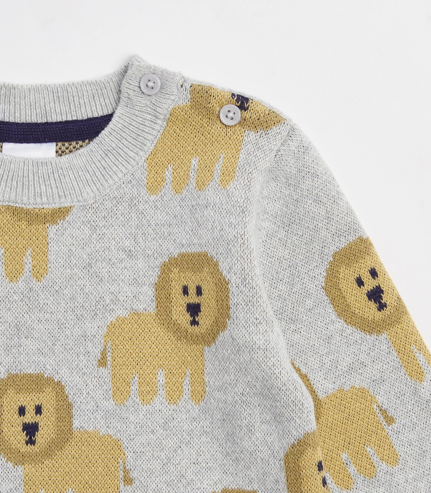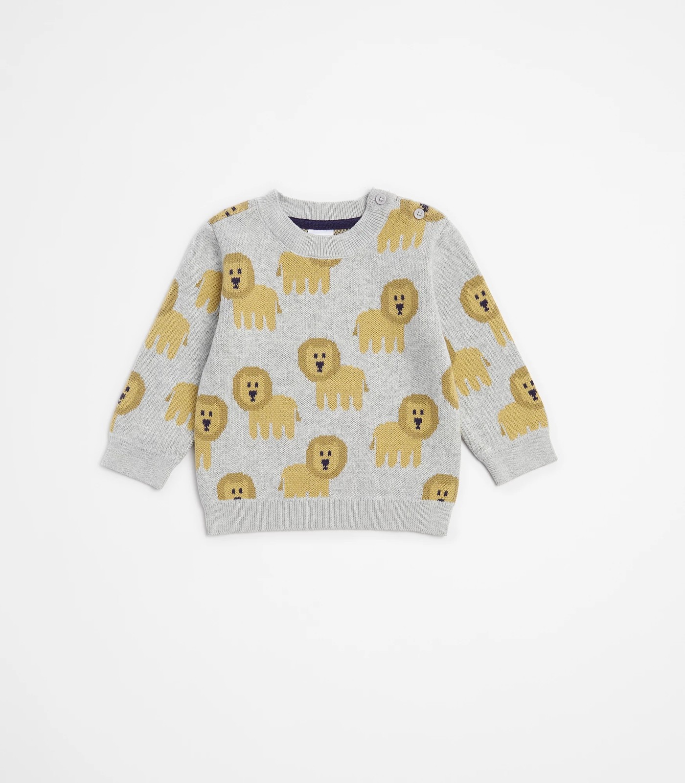 Dress your little one in this adorable Baby Knit Jumper that promises comfort and style. Made from a cotton-rich knit, it is soft and cosy on your baby's delicate skin. The charming all-over print and regular fit make it a cute choice for everyday wear. It features a crew neck, long sleeves, a straight hem and a button-up shoulder. Pair it with matching pants, available separately, for a complete look. Don't wait - upgrade your baby's wardrobe with this lovely jumper today!