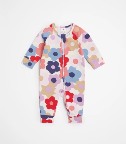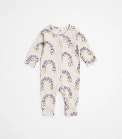 Baby Organic Cotton Footless Coverall - Flower Rainbow