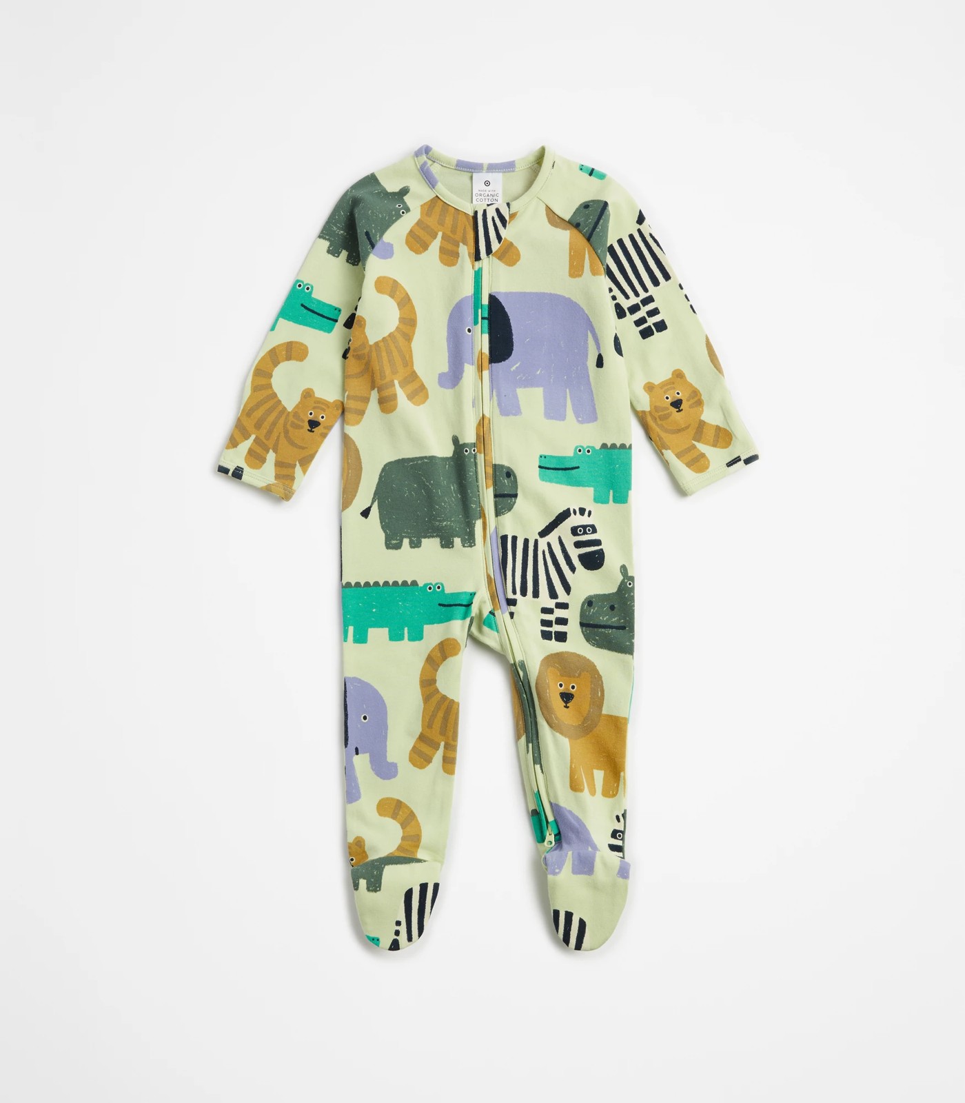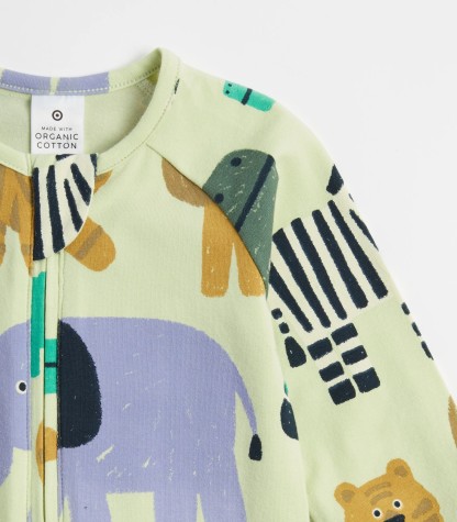 Baby Organic Cotton Print Zip Coverall - Safari Animals