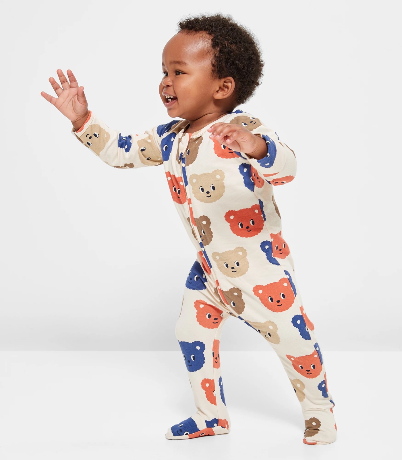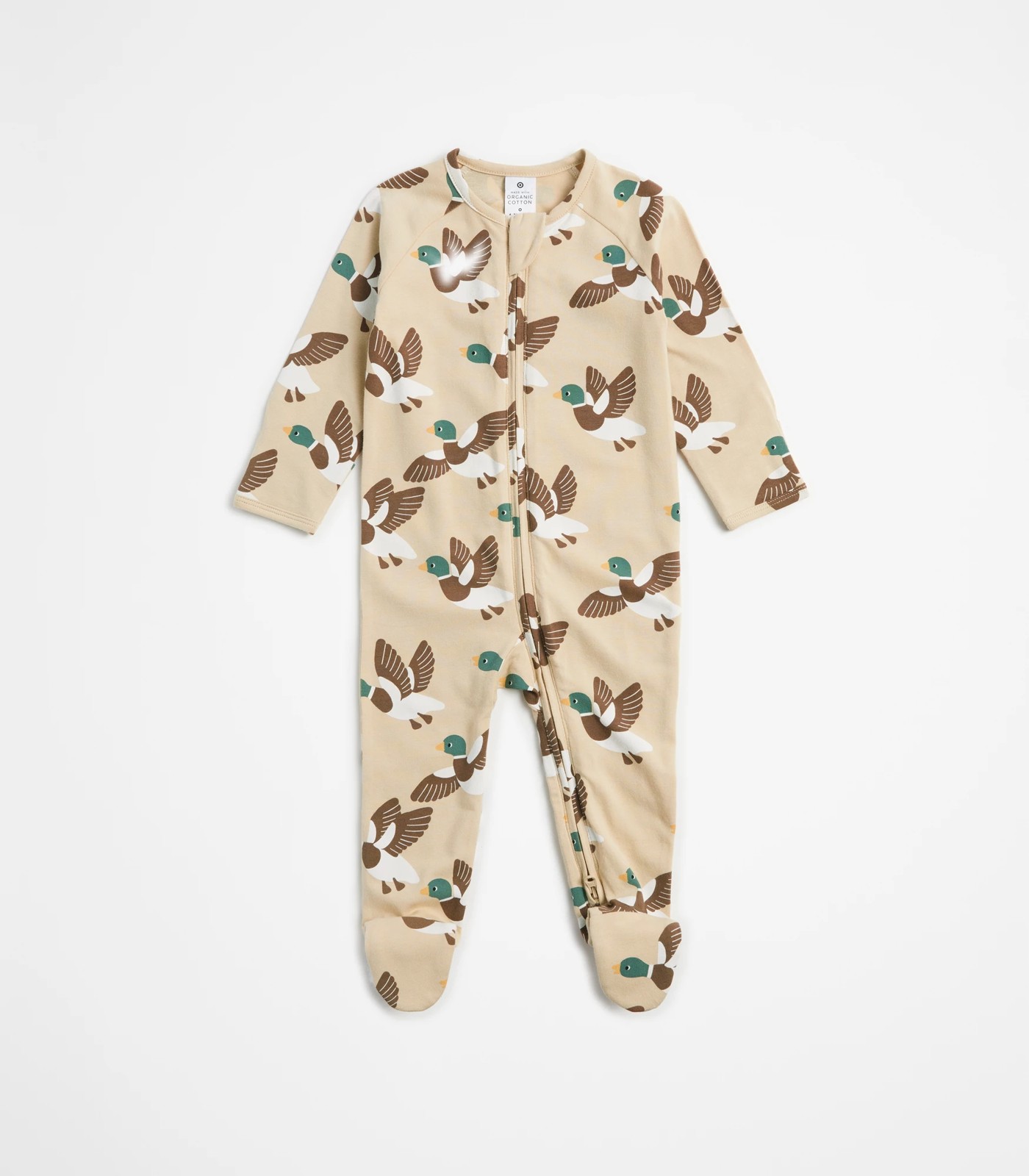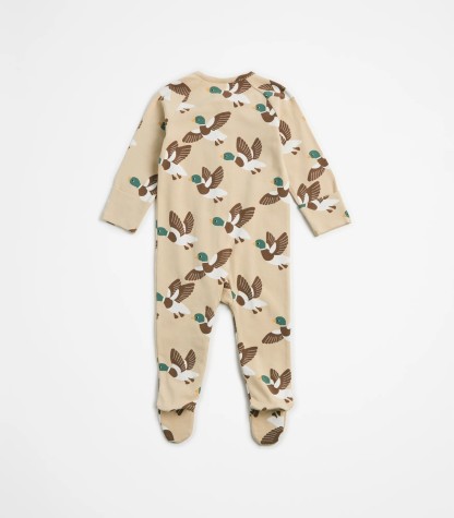 Keep your little one snug and stylish in our Baby Organic Cotton Print Zip Coverall. The organic cotton is gentle on delicate skin, while the adorable all-over print adds a touch of charm. Parents will love the convenience, thanks to the two-way zip front for easy changes and fold-over mittens for those colder days. Perfect for nap-time, playtime, or cuddle time, this coverall ensures comfort with its regular fit and long raglan sleeves, allowing full-range movement. The round neck and covered feet complete the look, making it a must-have in every baby's wardrobe.