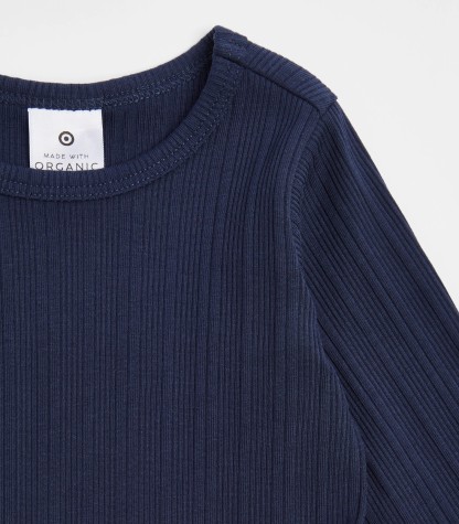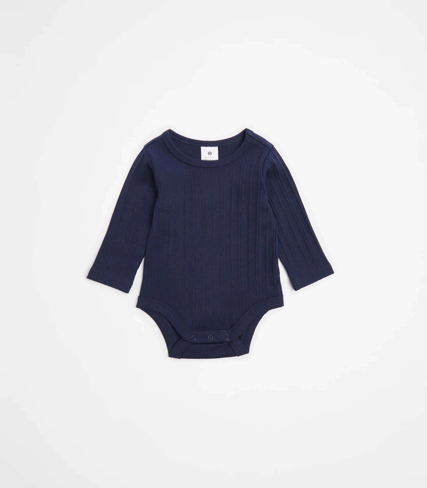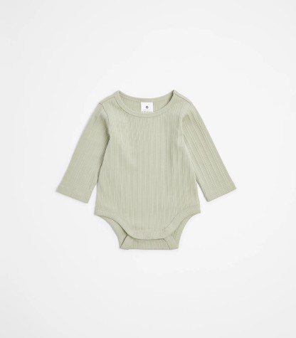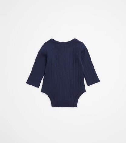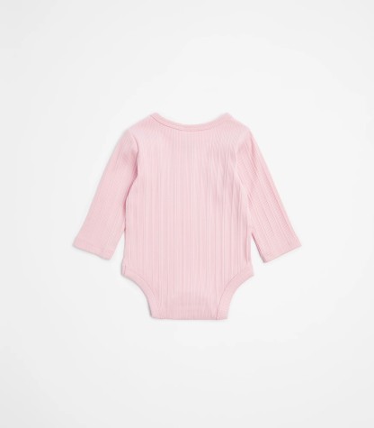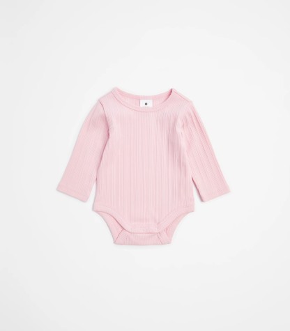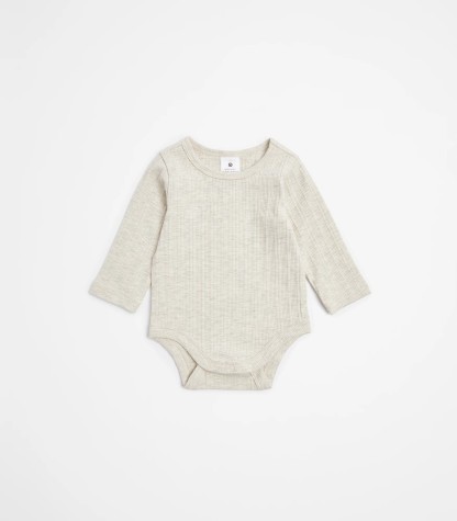Imagine your little one snuggled in organic cotton. Our Baby Organic Cotton Rib Bodysuit promises gentle comfort and a great fit with its excellent stretch. Designed with convenience in mind, it features a round neck, long sleeves, and handy press studs at the crotch for easy changes. The ribbed trim adds a touch of style. Grab one today!
