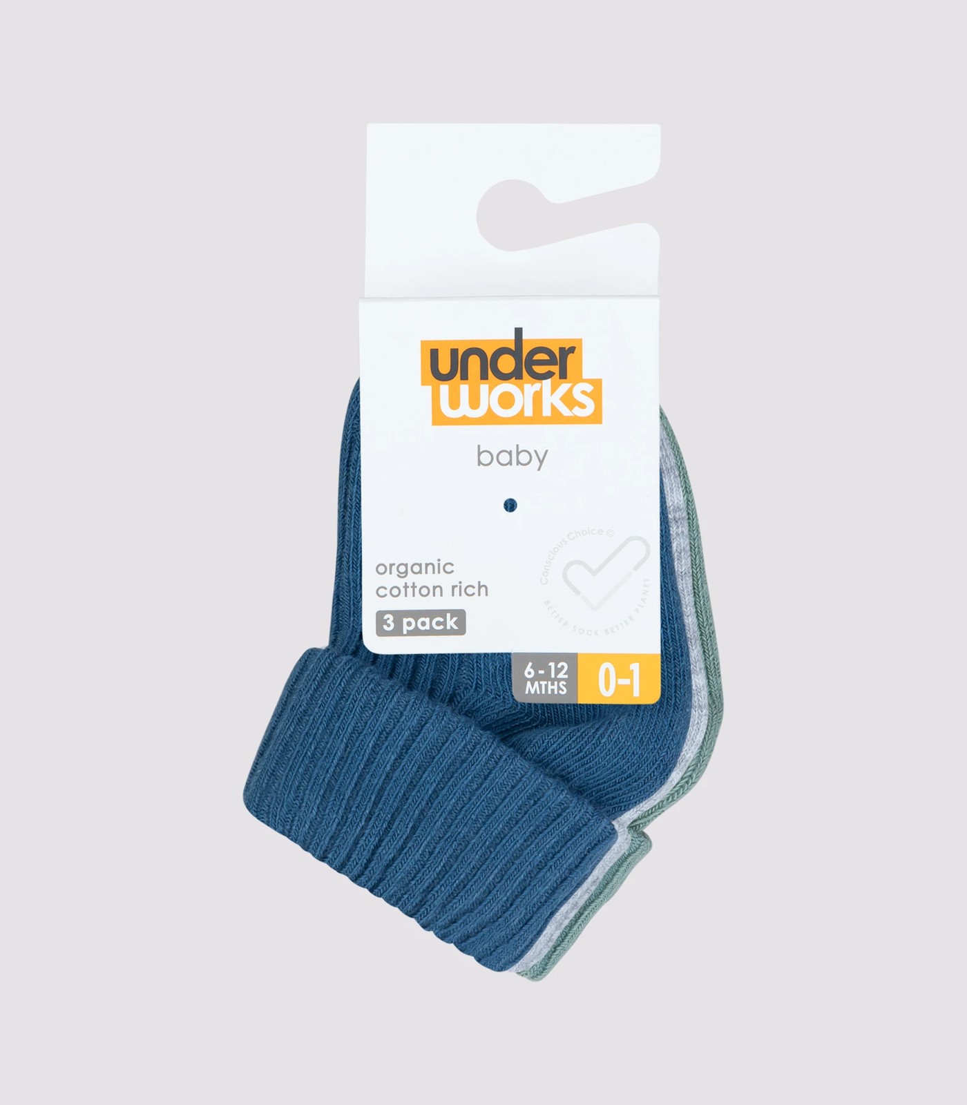 • Baby Organic Cotton Turn Over Rib Cuff Socks 3 Pack - Underworks