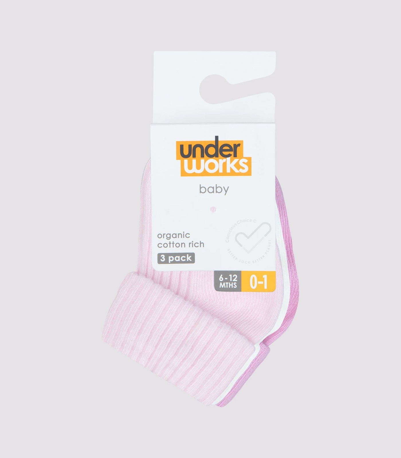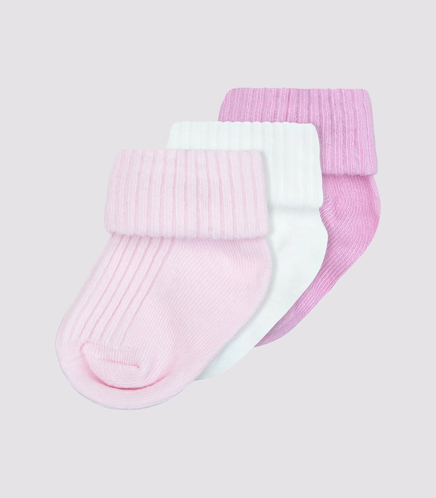 Baby Organic Cotton Turn Over Rib Cuff Socks 3 Pack - Underworks - Pinks/White