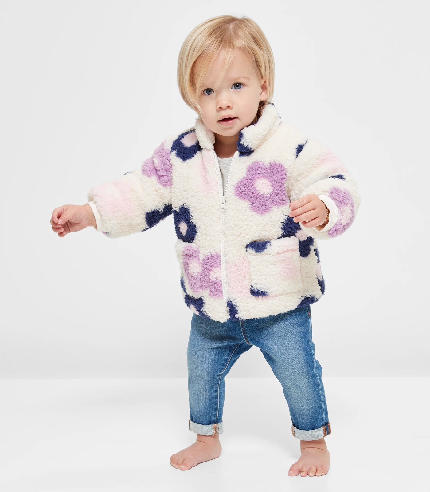 Welcome your little one to cosy warmth with our Teddy Fleece Baby Jacket! Delight in the delightfully plush feel that encases your baby, ensuring a snug fit. Featuring all-over teddy fleece detail, a convenient zip closure, a sleek stand collar, distinctive patch pocket, and ribbed cuffs for comfort. Keep your precious one wrapped in comfort and style with a touch of cuteness with our Teddy Fleece Baby Jacket today!