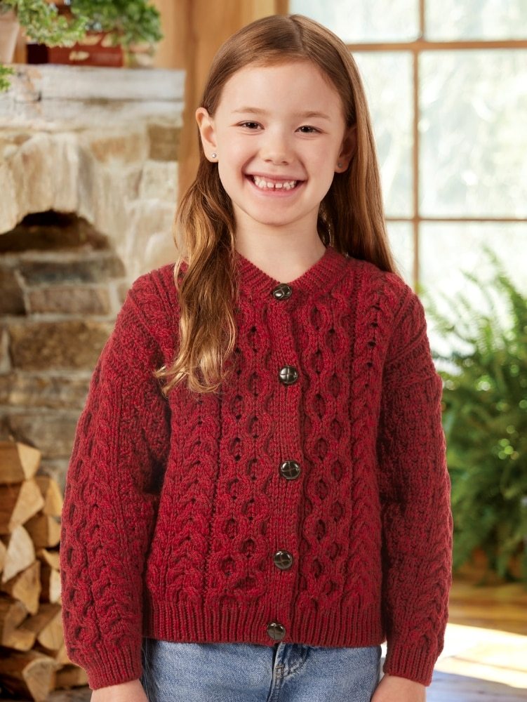 Start a tradition of giving authentic Aran sweaters to the children in your life with this cardigan, hand-knit in a Celtic knot design with ribbed collar, cuffs, and bottom hem. Supersoft Merino wool is gentle on little ones' skin, too! This carefully-crafted Aran sweater has traditional honeycomb and cable stitches.