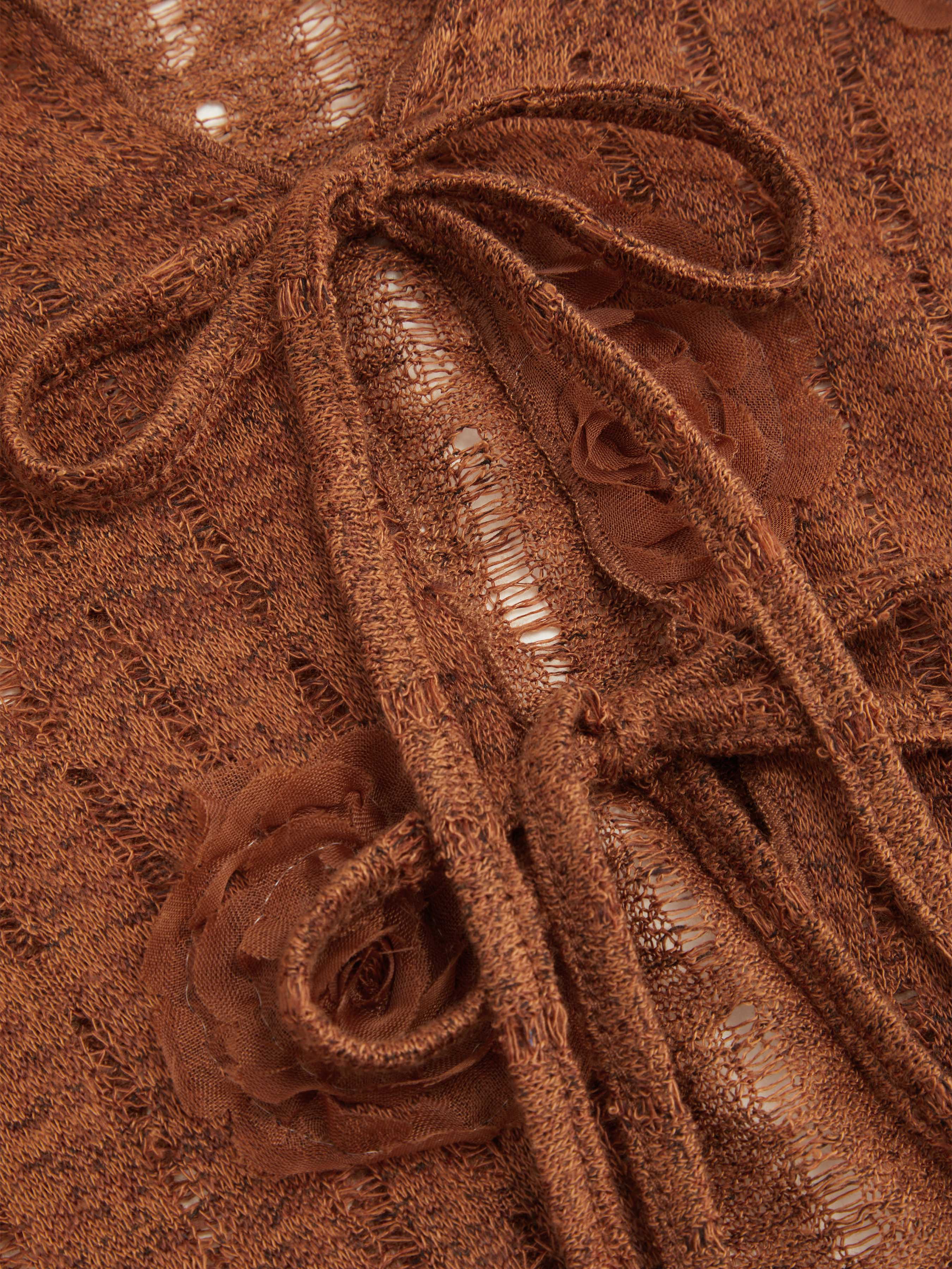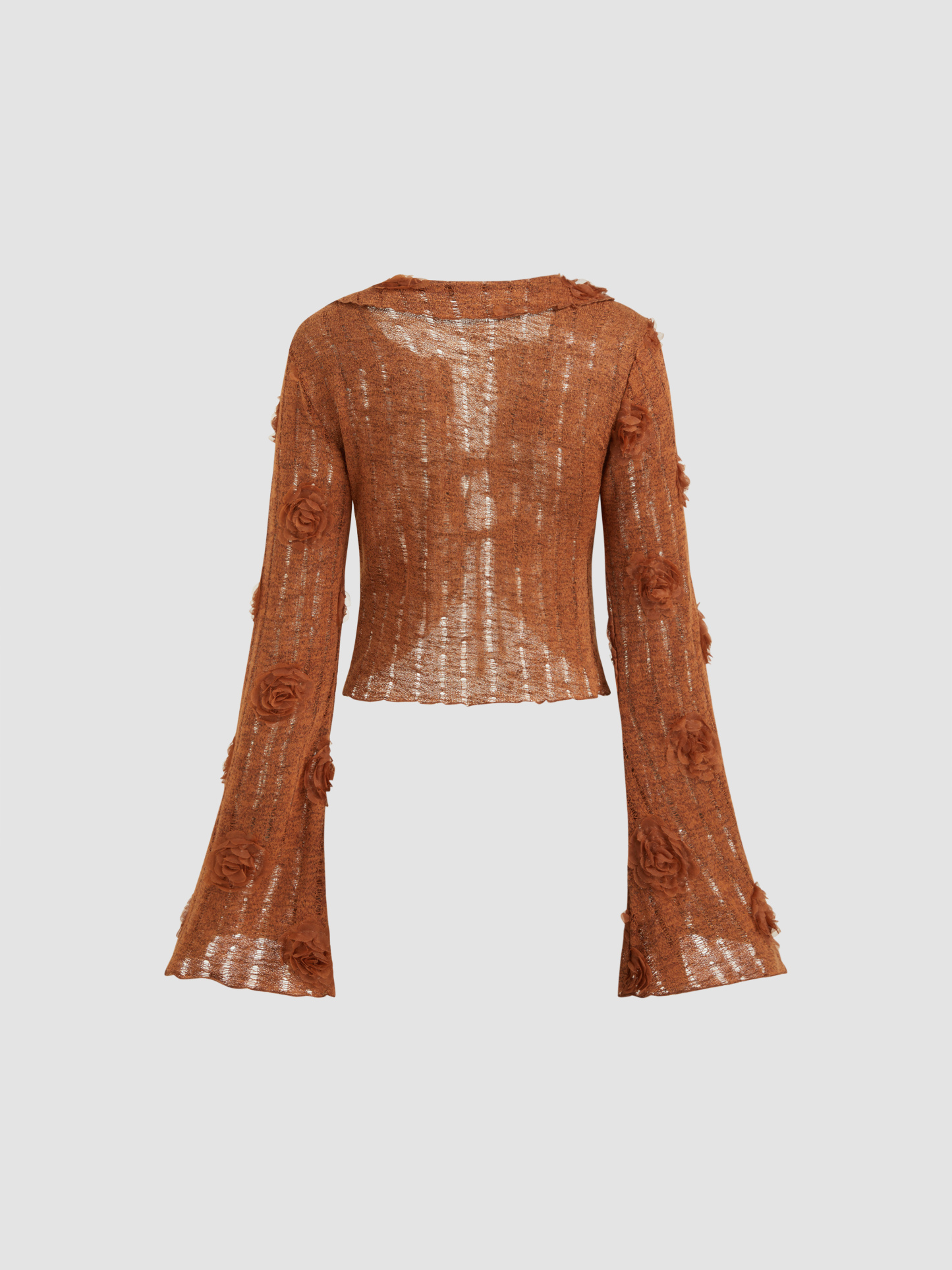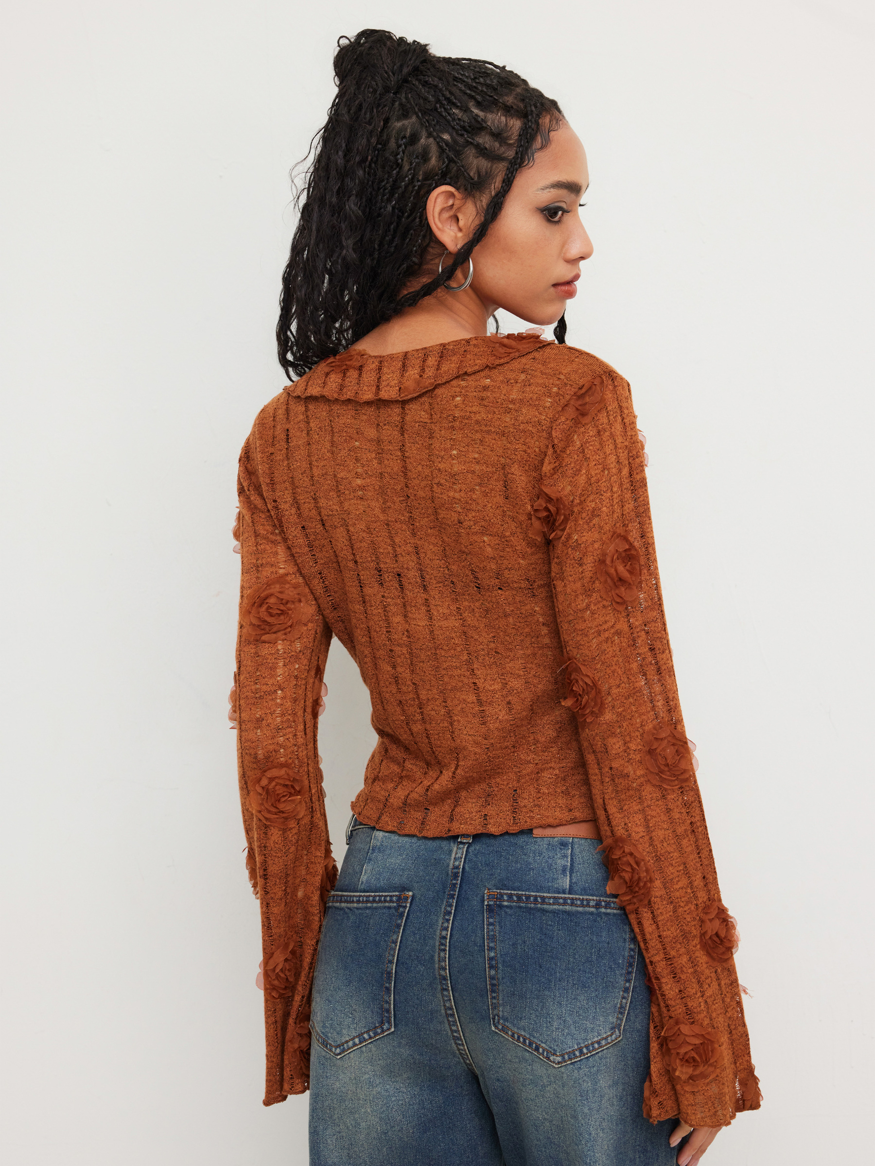 Composition: 100% Polyester Stretch: High Fit Type: Regular Fabric Thickness: Moderate Fabric Sheerness: Semi-transparent Occasion: Music Festival/Live House Pattern Type: Floral Lining: Unlined Length: Crop Material: Knit Fabric Neckline: Collar Pattern Detail: Floral Clothing Detail: Tie Front