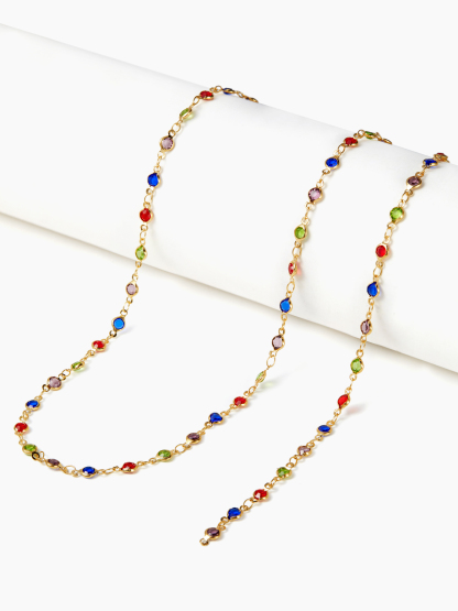 COLORFUL RHINESTONE LONG NECKLACE