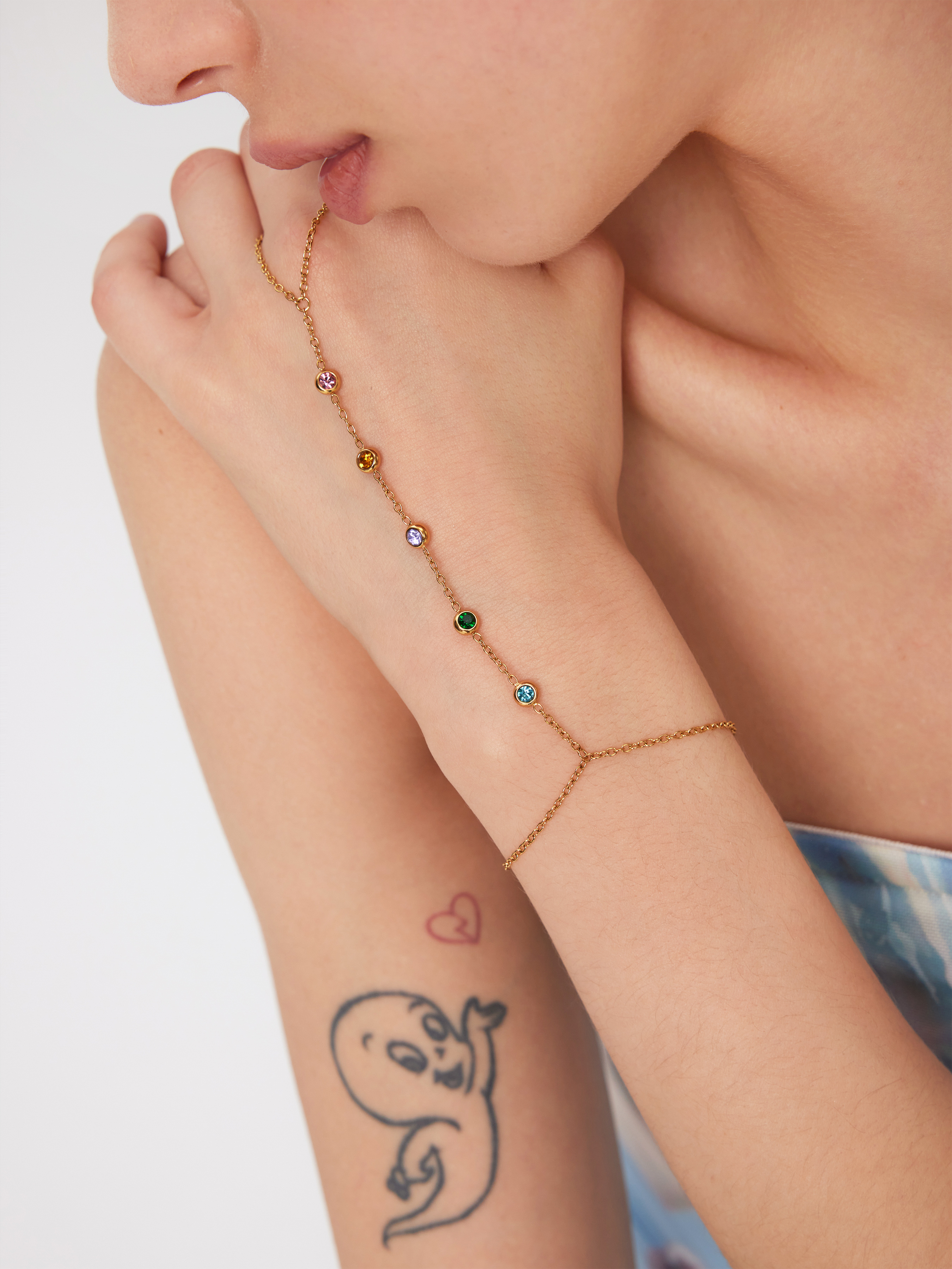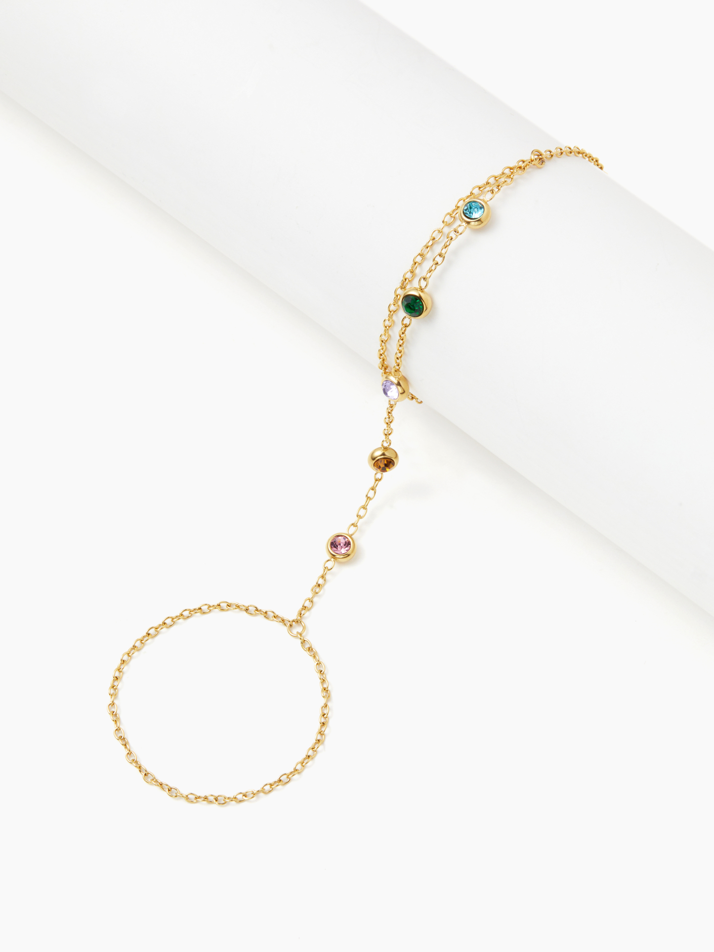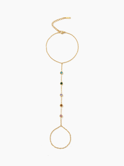 COLORFUL ZIRCON 18K GOLD PLATED STAINLESS STEEL MITTENS BRACELET