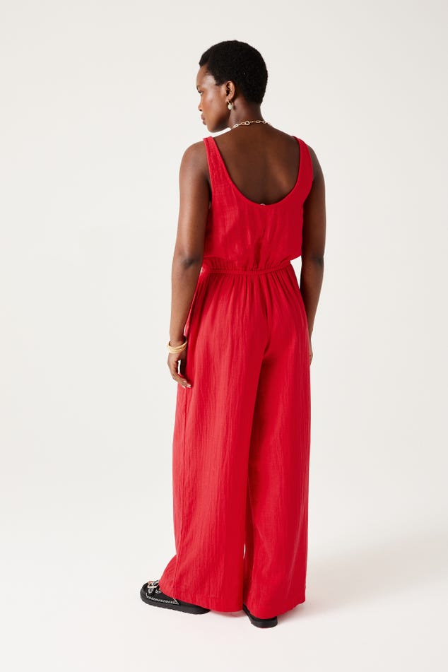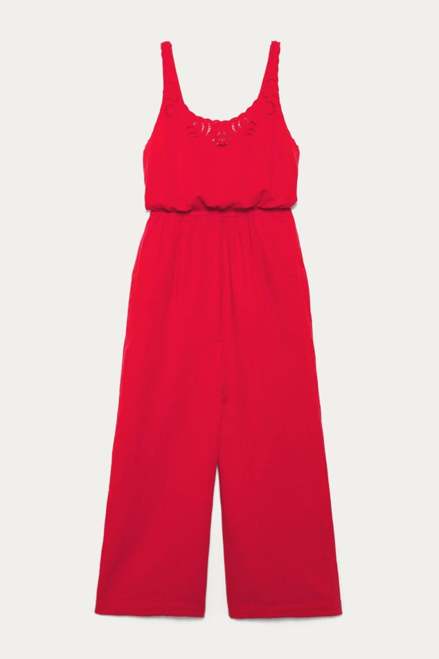 Les ajours brodés déclenchent les coups de cœur ! Facile à vivre, la double gaze de coton est une étoffe douce et aérienne, légèrement gaufrée. Encolure arrondie dégagée devant et dos. Pinces poitrine. Taille haute élastiquée. 2 poches. Jambes larges. Contient du coton issu de l'agriculture biologique, cultivé sans pesticides, ni engrais chimiques, ni OGM afin de préserver la biodiversité.
