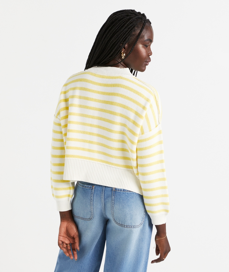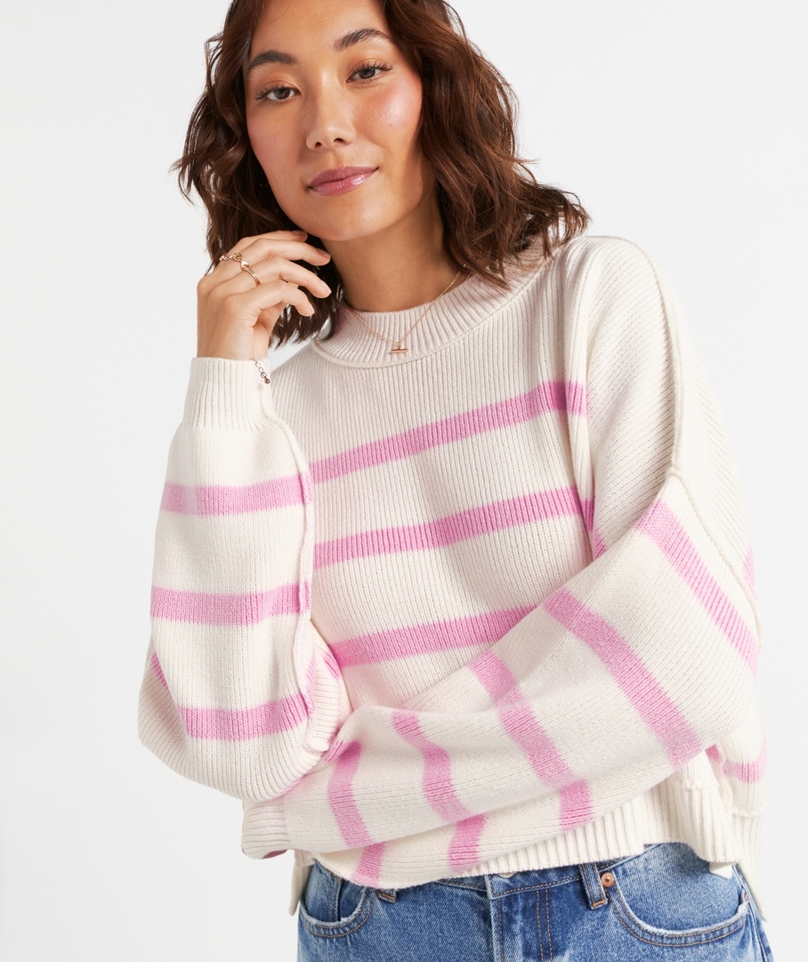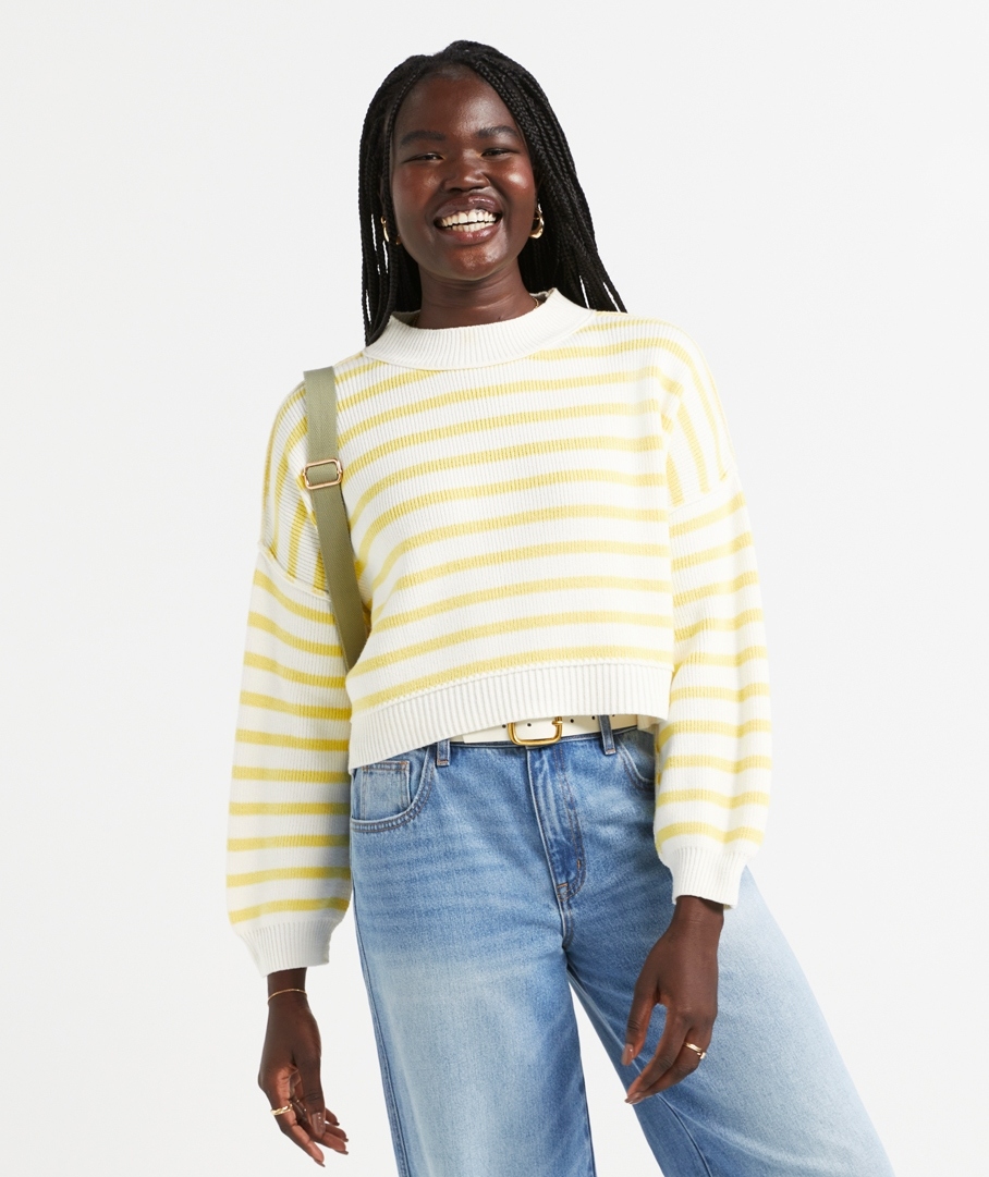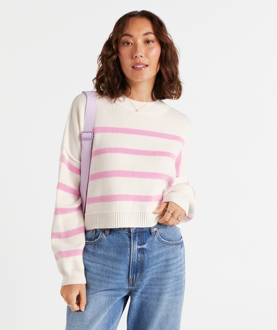 You'll be reaching for Eryn Cotton Knit Sweater all season! In a playful stripe design, cropped length, and long sleeves. For a casual day out, pair with your fave jeans, a colourful crossbody bag, and a chain necklace.