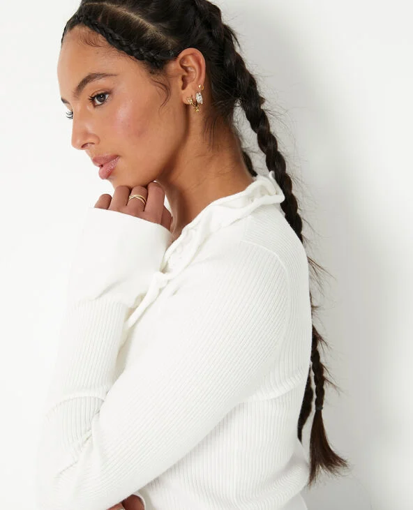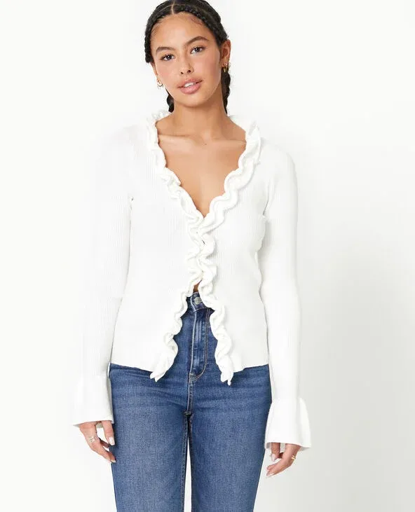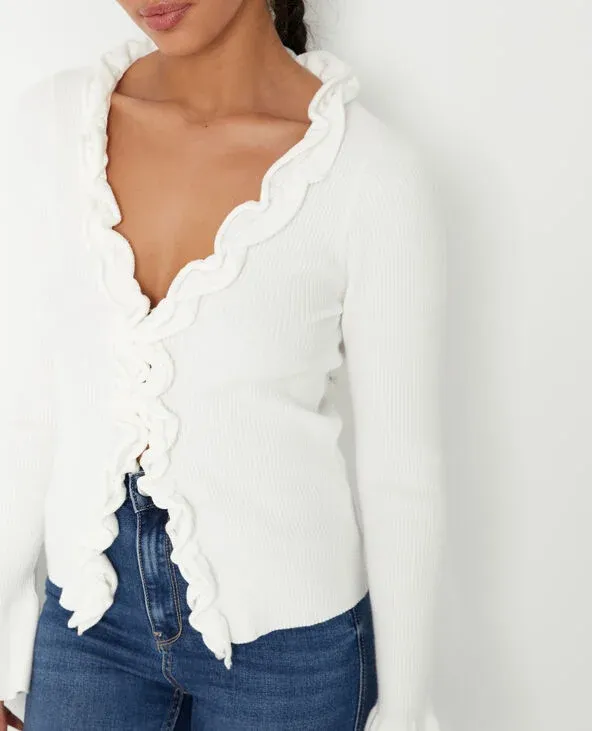 Gilet en maille côtelée avec volants - Blanc