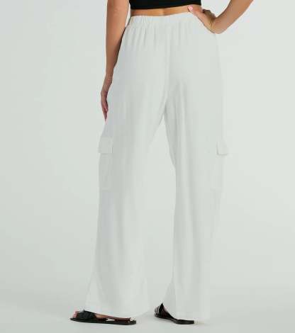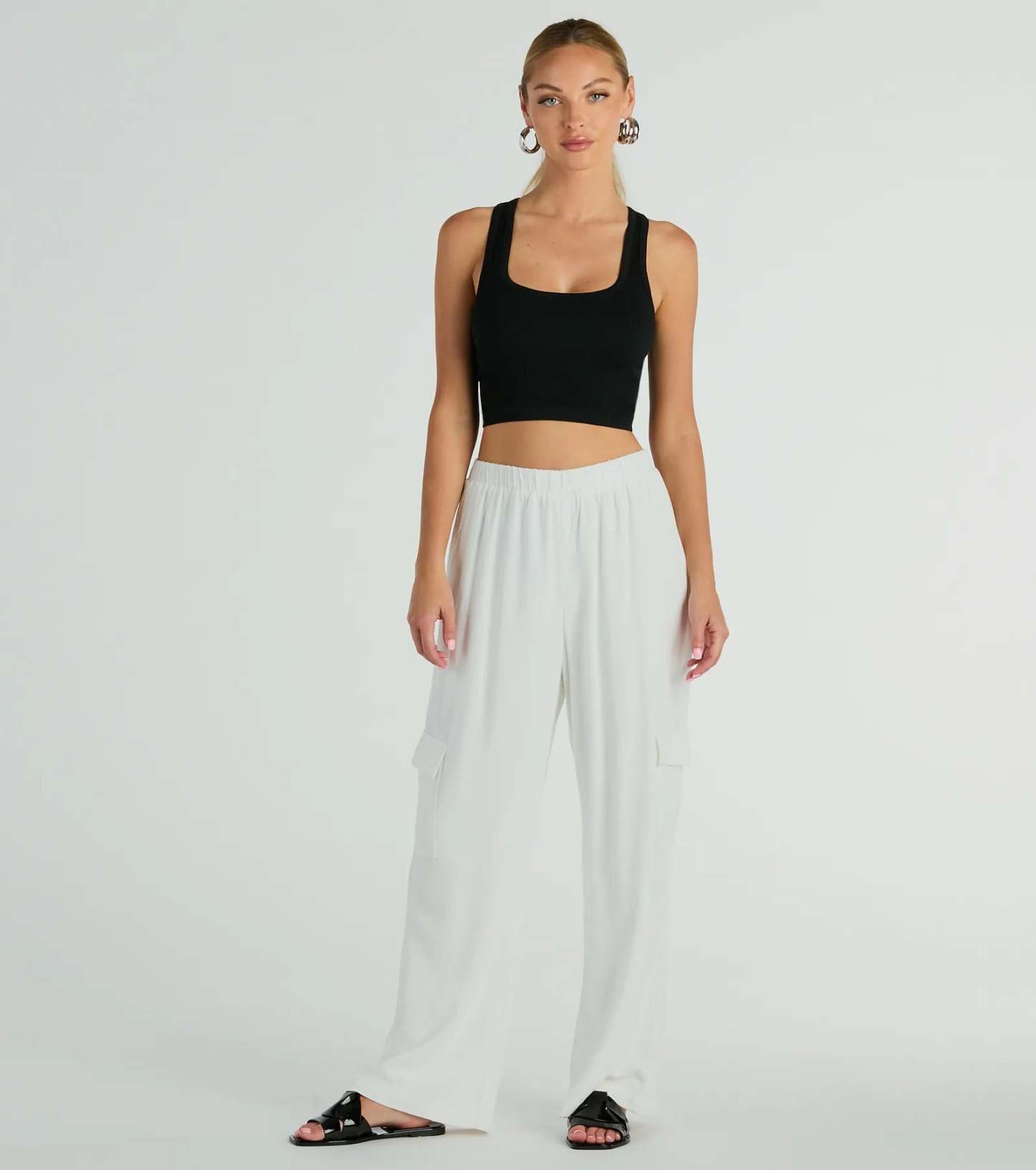 Stroll in these linen wide-leg pants during golden hour on vacation or a weekend by the beach! Designed with a high-rise elasticized waistband and linen fabric, these pants are perfect for all-day wear along with convenient cargo flap pockets and a wide-leg silhouette, you'll feel effortlessly chic and ready for anything. Complete the look with the matching vest and sandals.