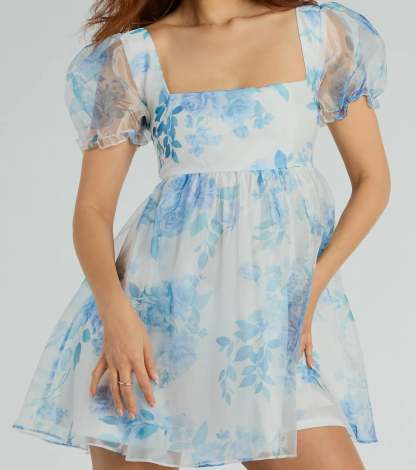 Sipping mocktails in the sunshine is always cuter in this floral babydoll dress perfect for showers and graduations! The artsy floral print adds a touch of whimsy, while the organza sheer fabric keeps you comfortable and breezy. Boasting sheer puff sleeves, a square neckline, and a short-length babydoll silhouette that is so flattering! Complete the look in dainty and heels.