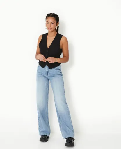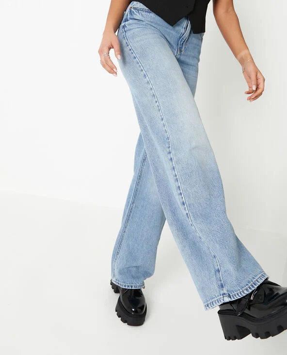 - Jean wide bleu délavé.