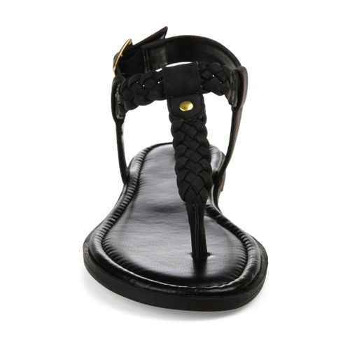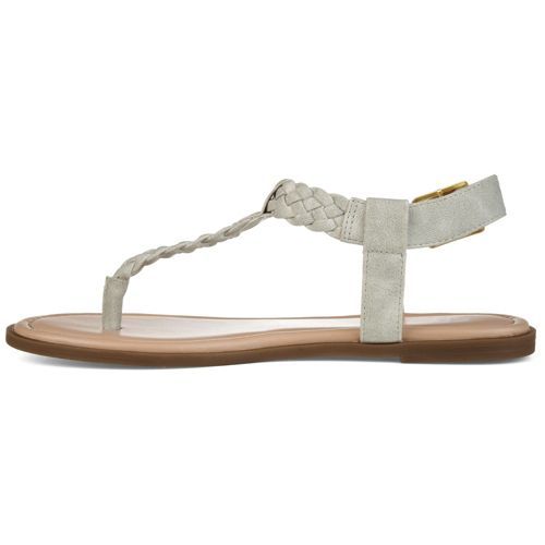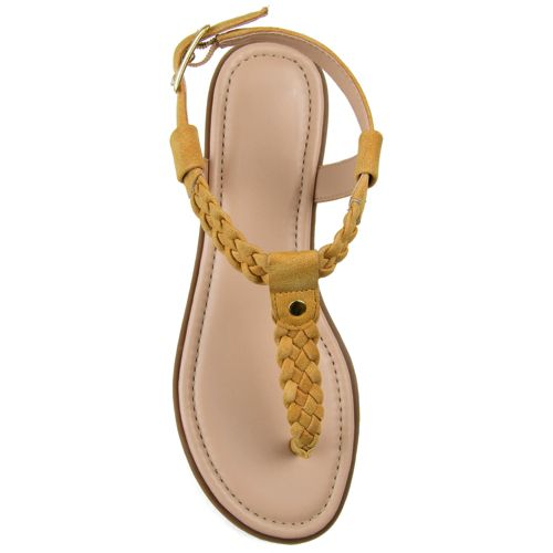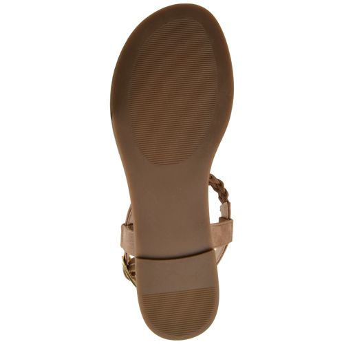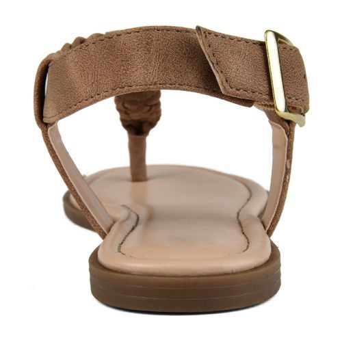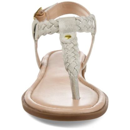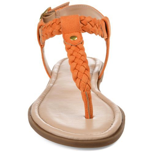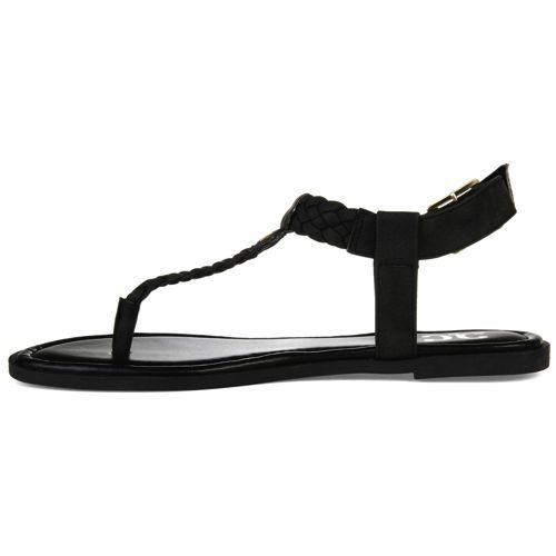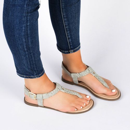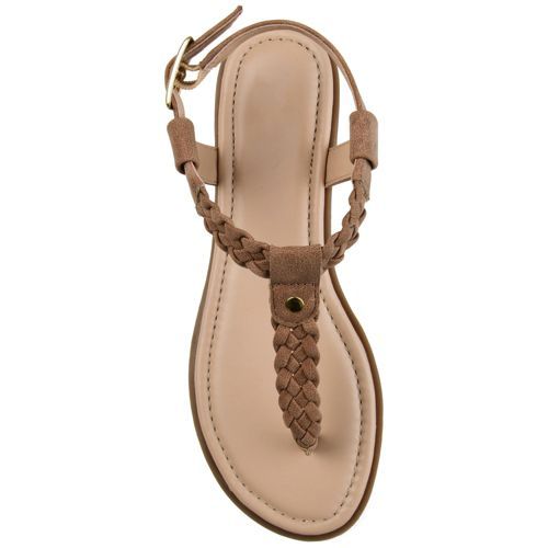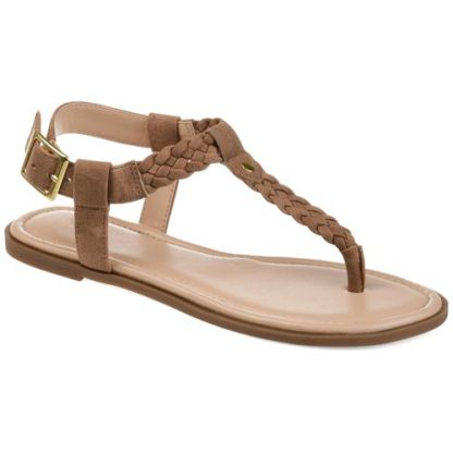 Braided sandals are always a favorite, and the Genevive sandal by Journee has the works. This sandal features a T-strap design with a stud and square buckle accents. It has durable faux Nubuck material with a cushion insole for a lasting look without hurting your feet.
