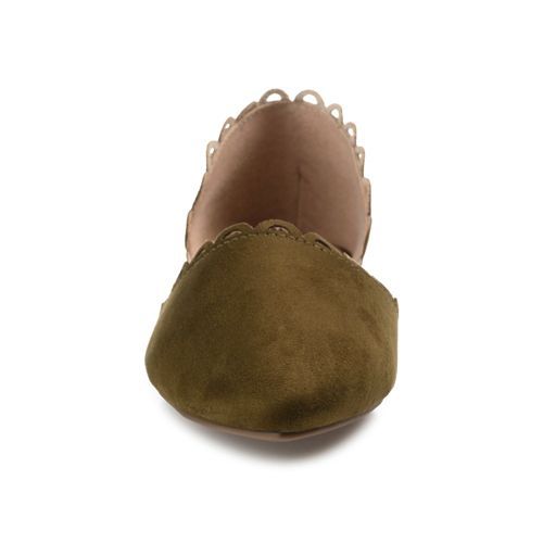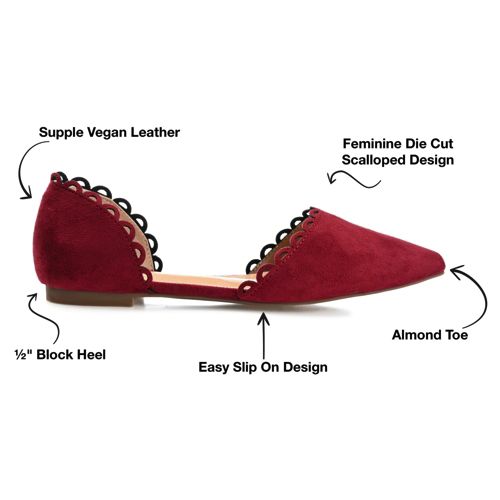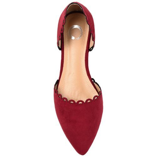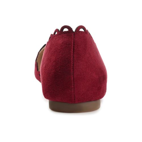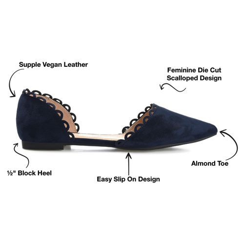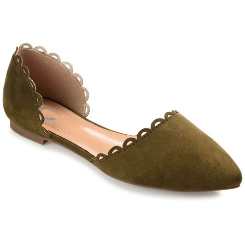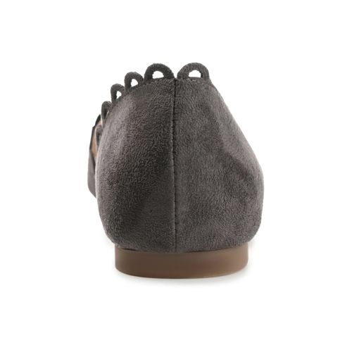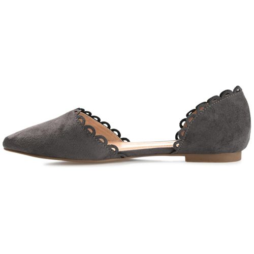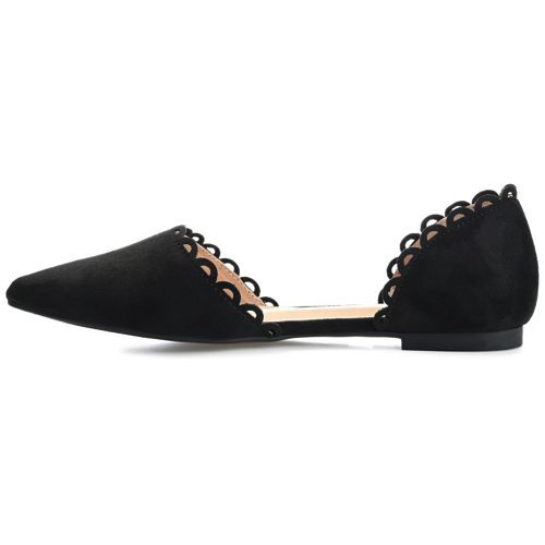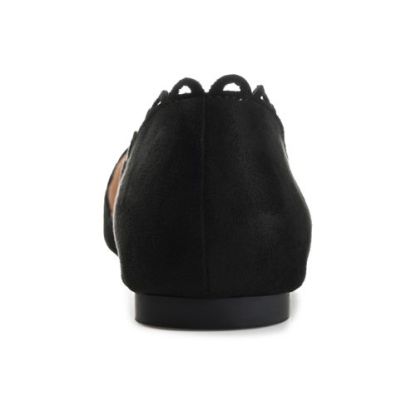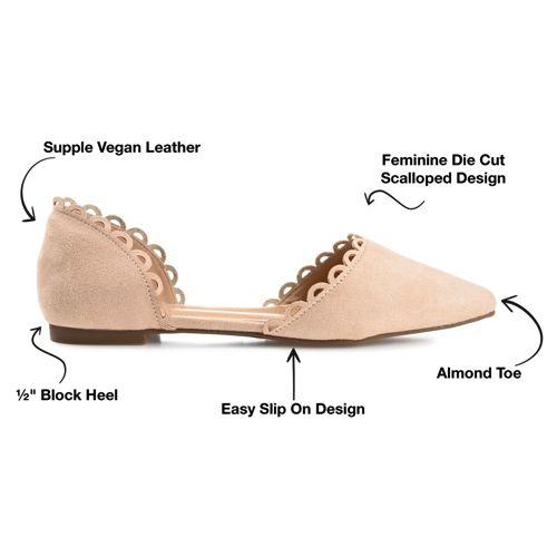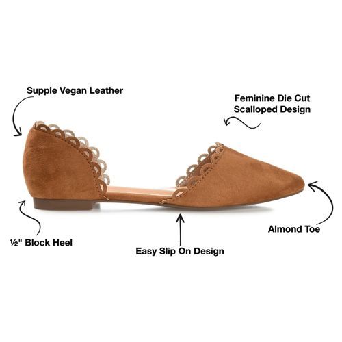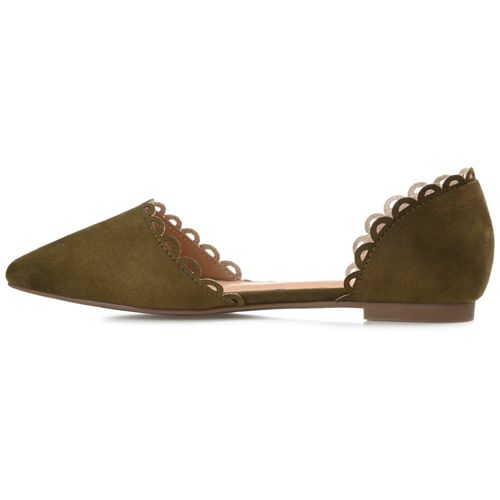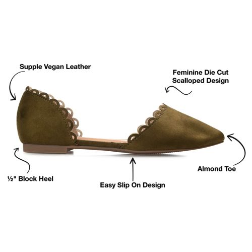 The Jezlin flat by Journee features a lovely scalloped cut-out edge, and a faux suede material. The flattering pointed toe and breezy cut-outs come together to create a comfortable, all-day wear shoe.