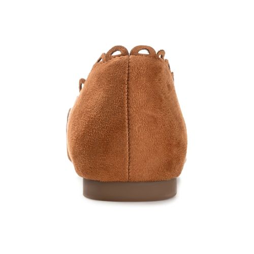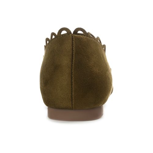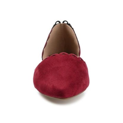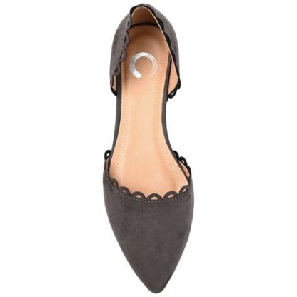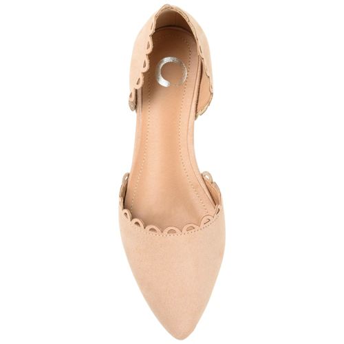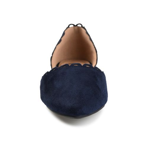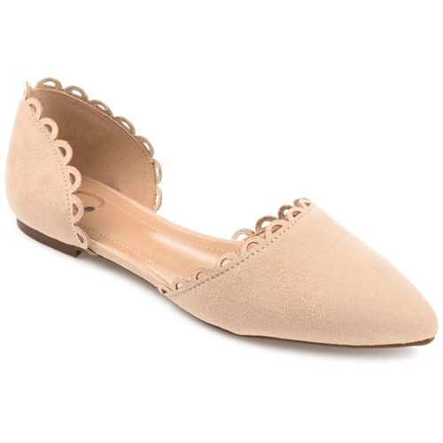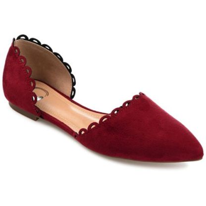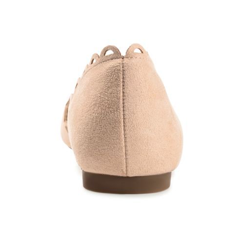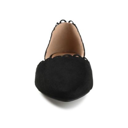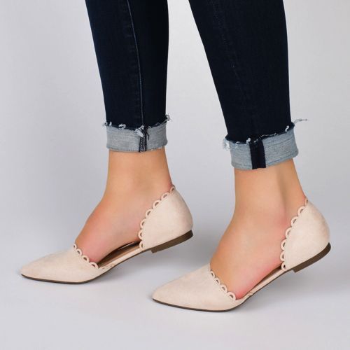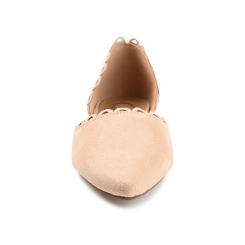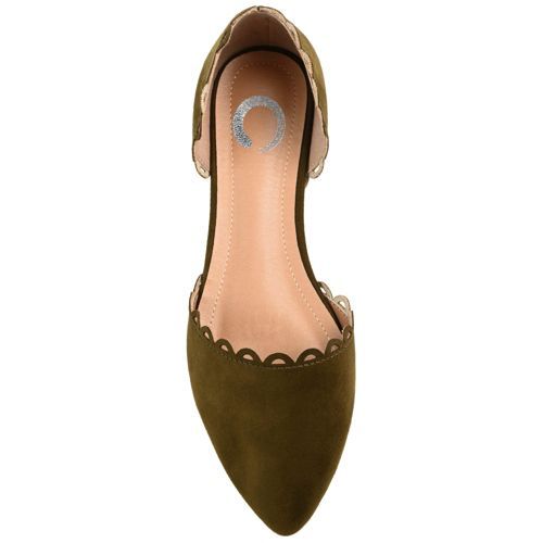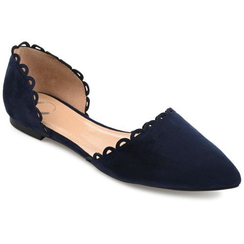 The Jezlin flat by Journee features a lovely scalloped cut-out edge, and a faux suede material. The flattering pointed toe and breezy cut-outs come together to create a comfortable, all-day wear shoe.