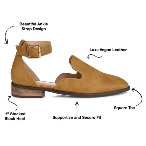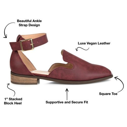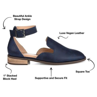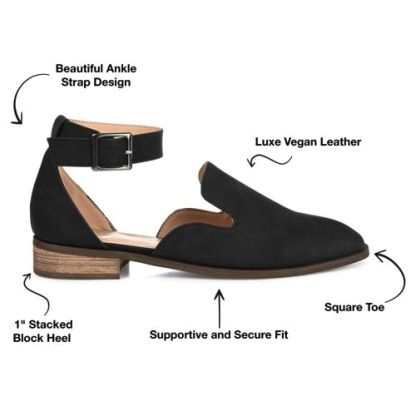 If you’re looking for the perfect flat for the season, look no further than the Loreta flat by Journee. This flat features a loafer style with a unique square toe shape. This shoe is very breathable, and the thick ankle strap completes this “back to school” ready design.