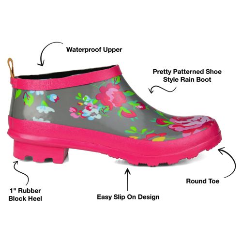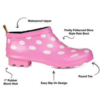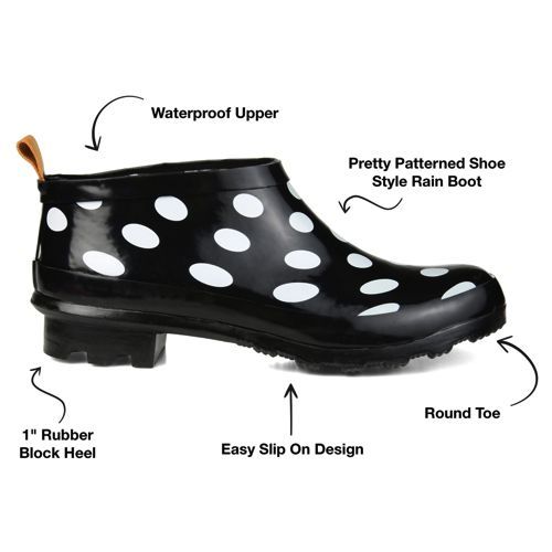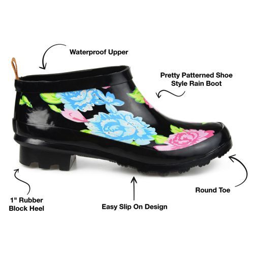 Step into a unique style with the Rainer rain boot by Journee. This rain boot is so perfect for all your water adventures. This rain boot features an ankle height that is water resistant and features 4 beautiful patterns!