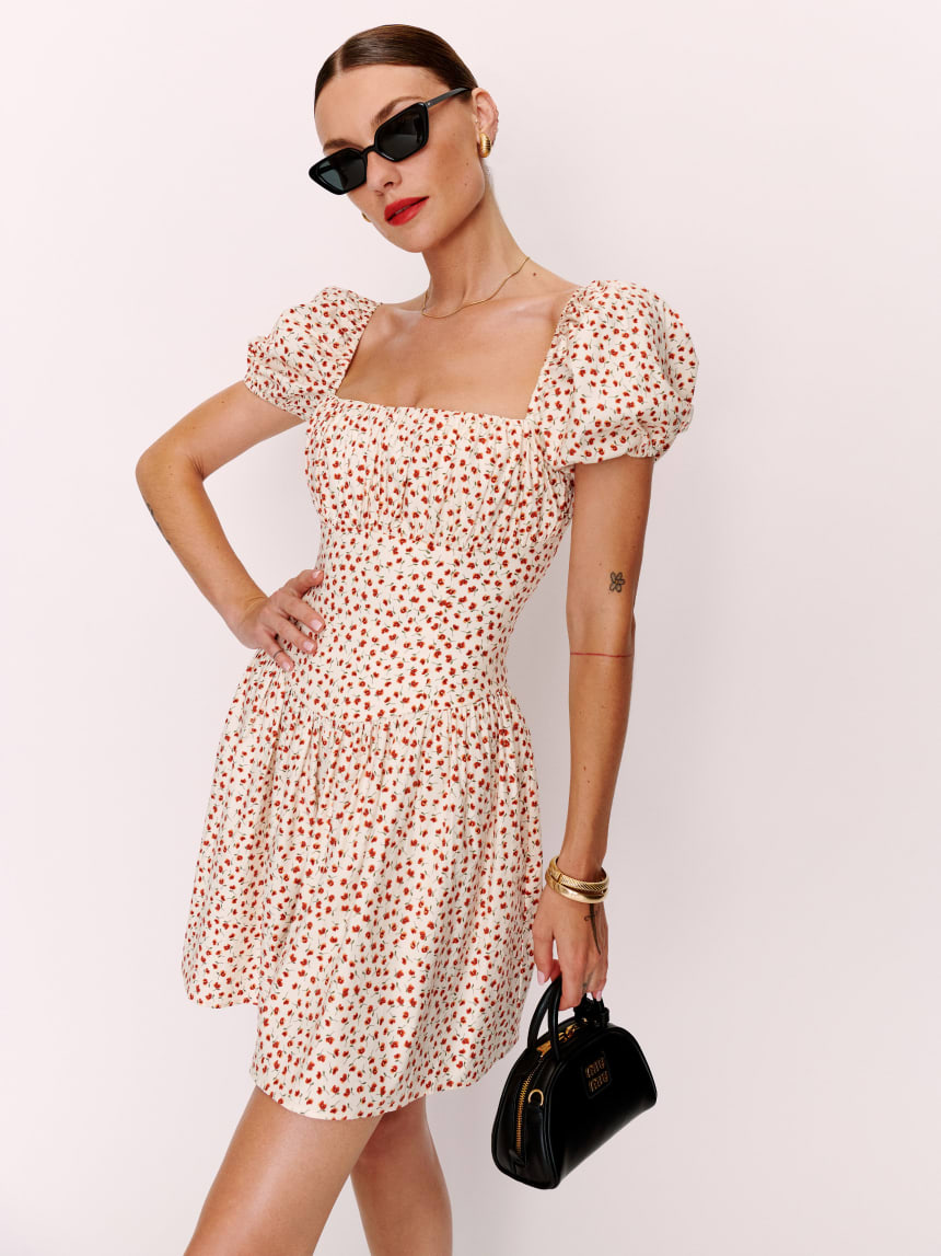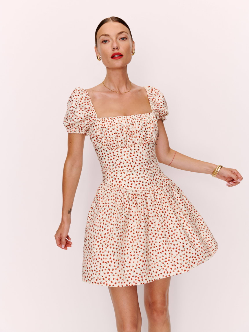 The model is wearing a size 0 and is 5'10", 23" waist, 34.5" hips, 31" bust.
