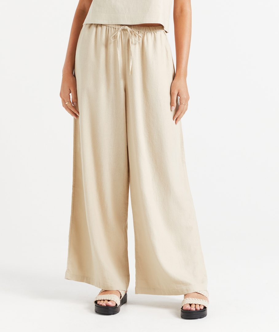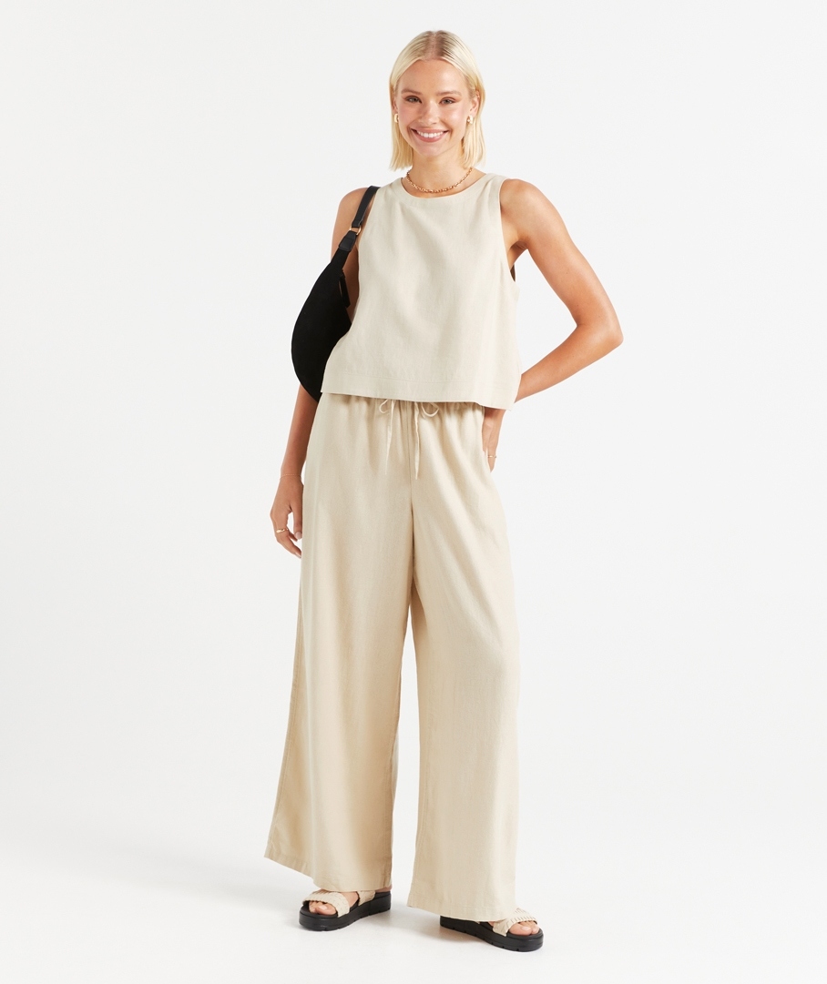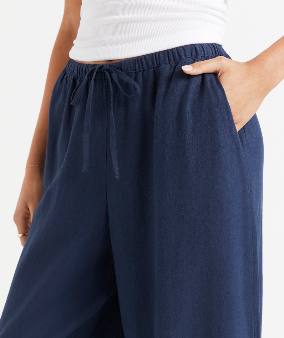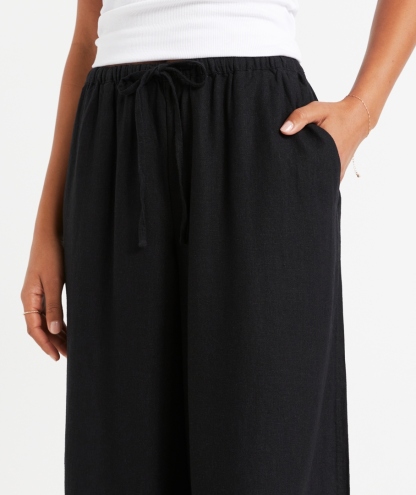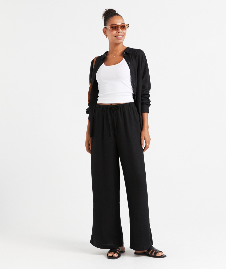 Your new must-have for the season is here, the Max Linen Blend Wide Leg Pant! Designed in a lightweight linen blend material, full length, wide legs, side pockets, and an elastic waist with a drawstring. They're the perfect pant to dress up with a blouse and jacket. Or keep casual with a graphic tee. Mix and match with our range of linen tops.