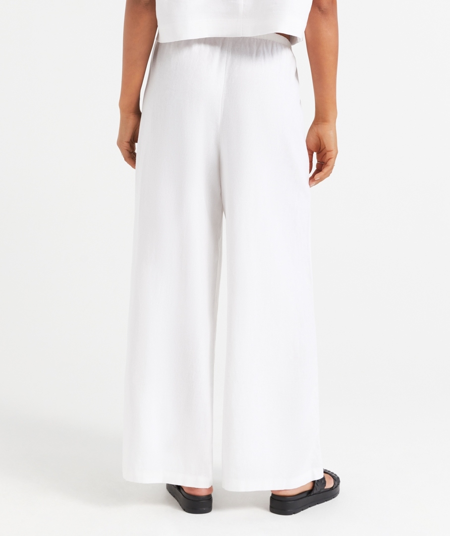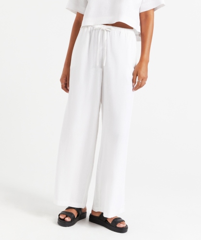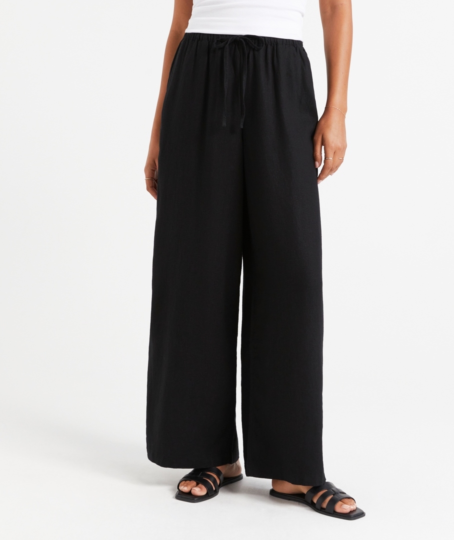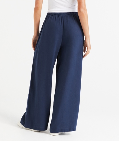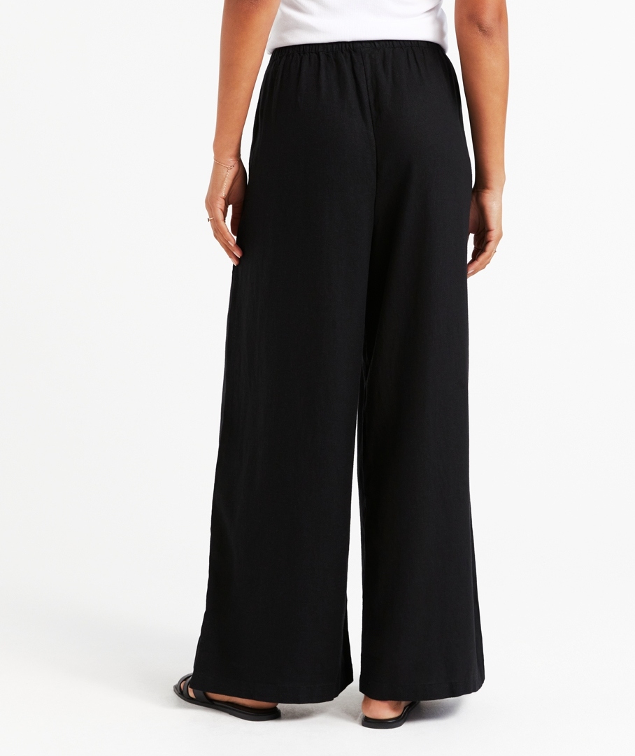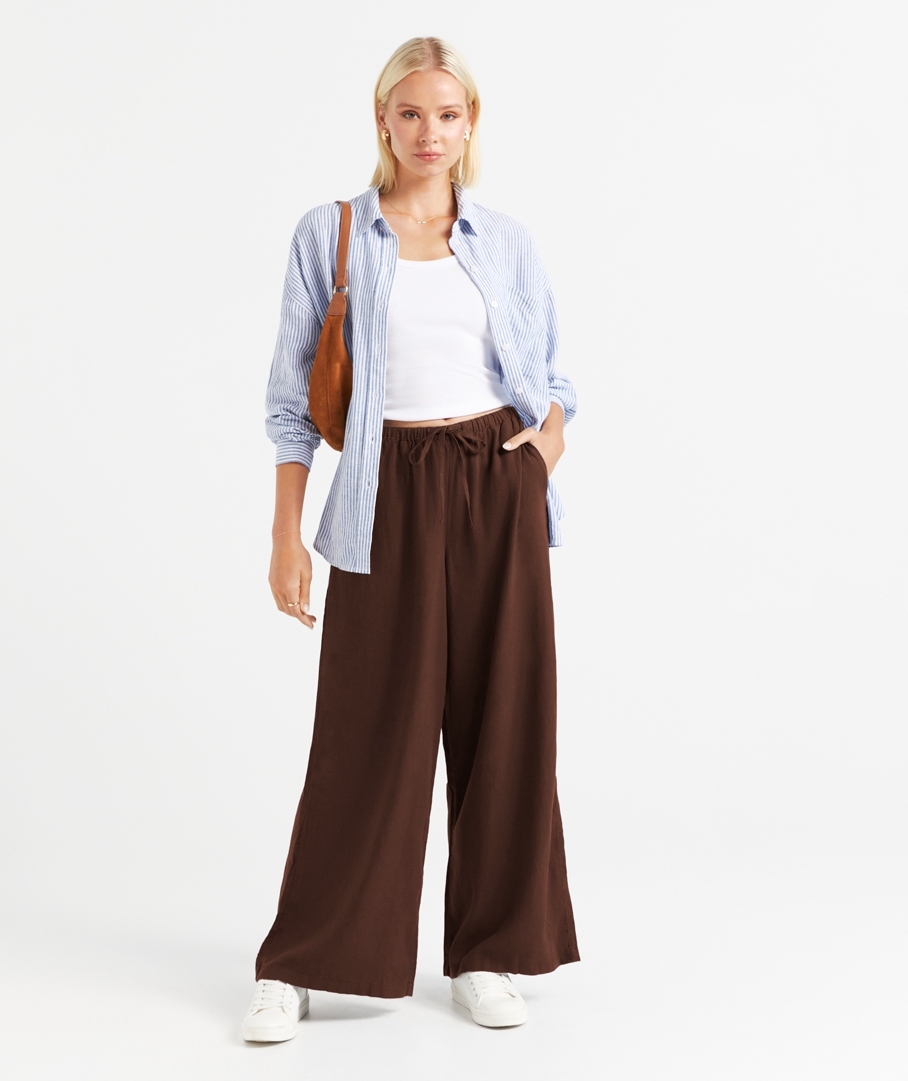 Your new must-have for the season is here, the Max Linen Blend Wide Leg Pant! Designed in a lightweight linen blend material, full length, wide legs, side pockets, and an elastic waist with a drawstring. They're the perfect pant to dress up with a blouse and jacket. Or keep casual with a graphic tee. Mix and match with our range of linen tops.