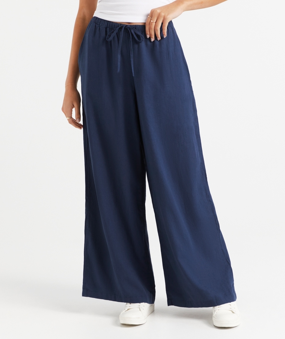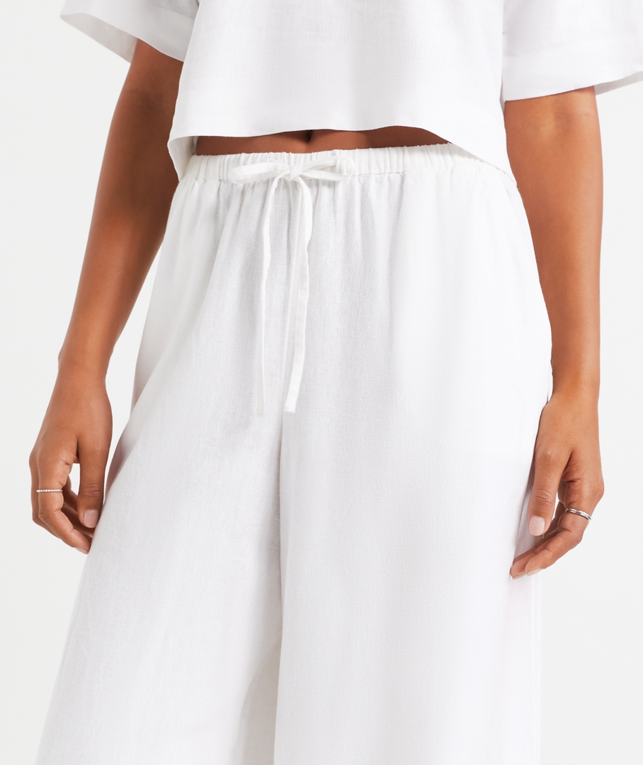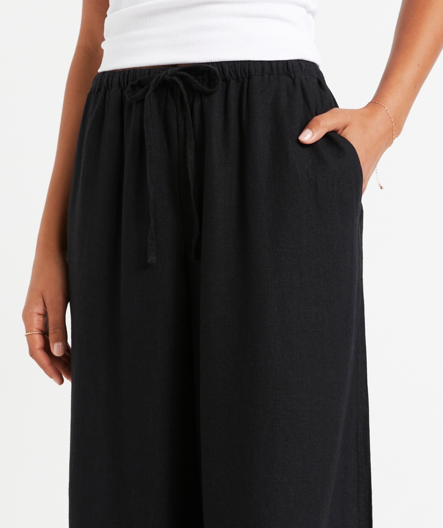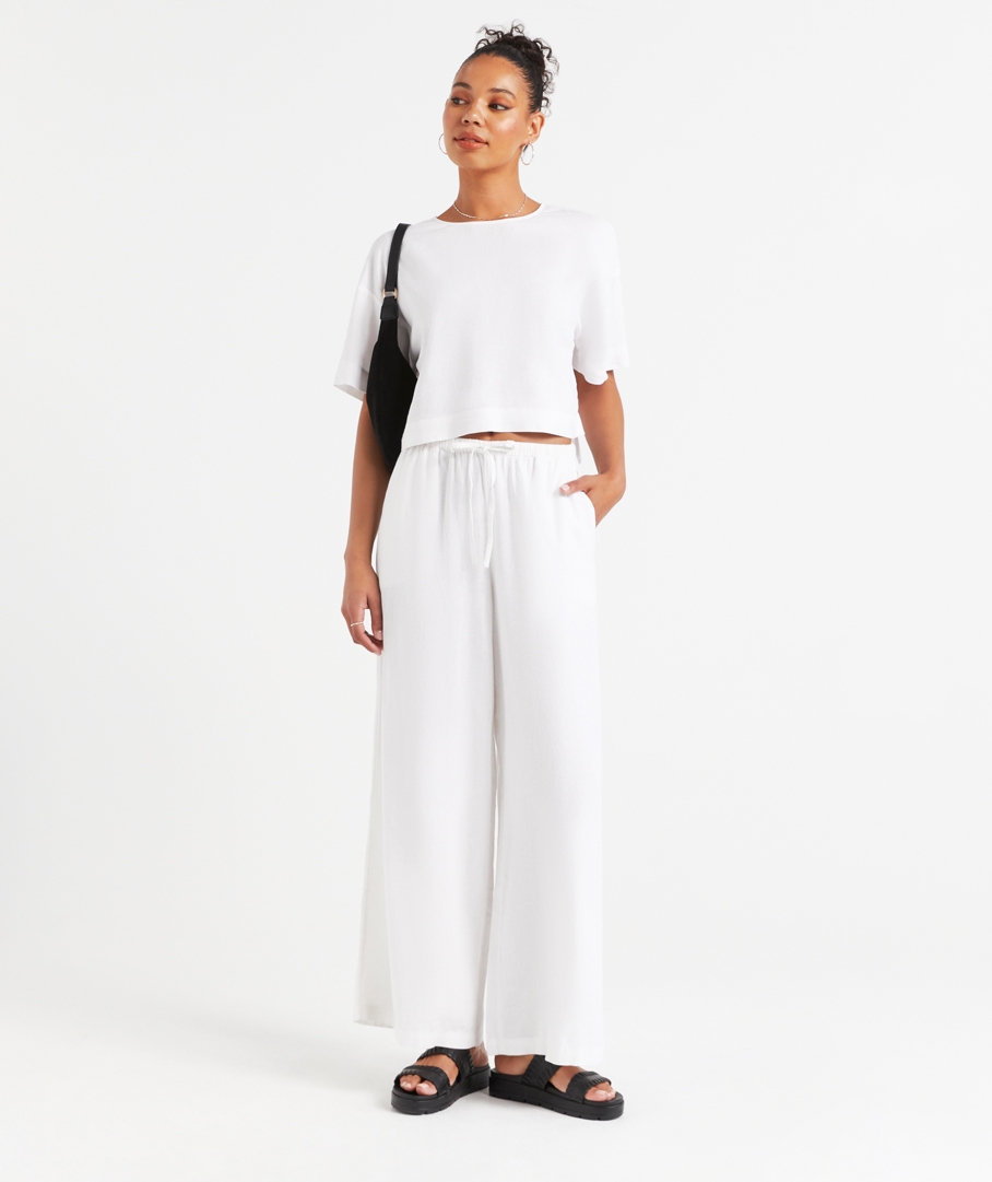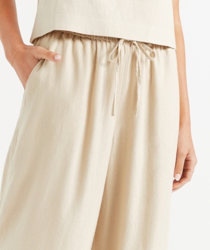 Your new must-have for the season is here, the Max Linen Blend Wide Leg Pant! Designed in a lightweight linen blend material, full length, wide legs, side pockets, and an elastic waist with a drawstring. They're the perfect pant to dress up with a blouse and jacket. Or keep casual with a graphic tee. Mix and match with our range of linen tops.