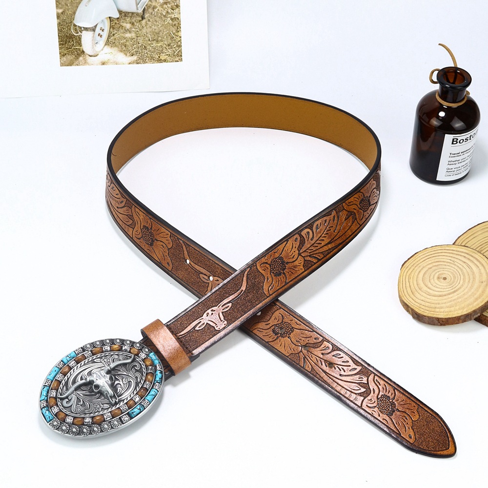 Men's Vintage Western Cowboy Bullhead Big Plate Buckle Belt