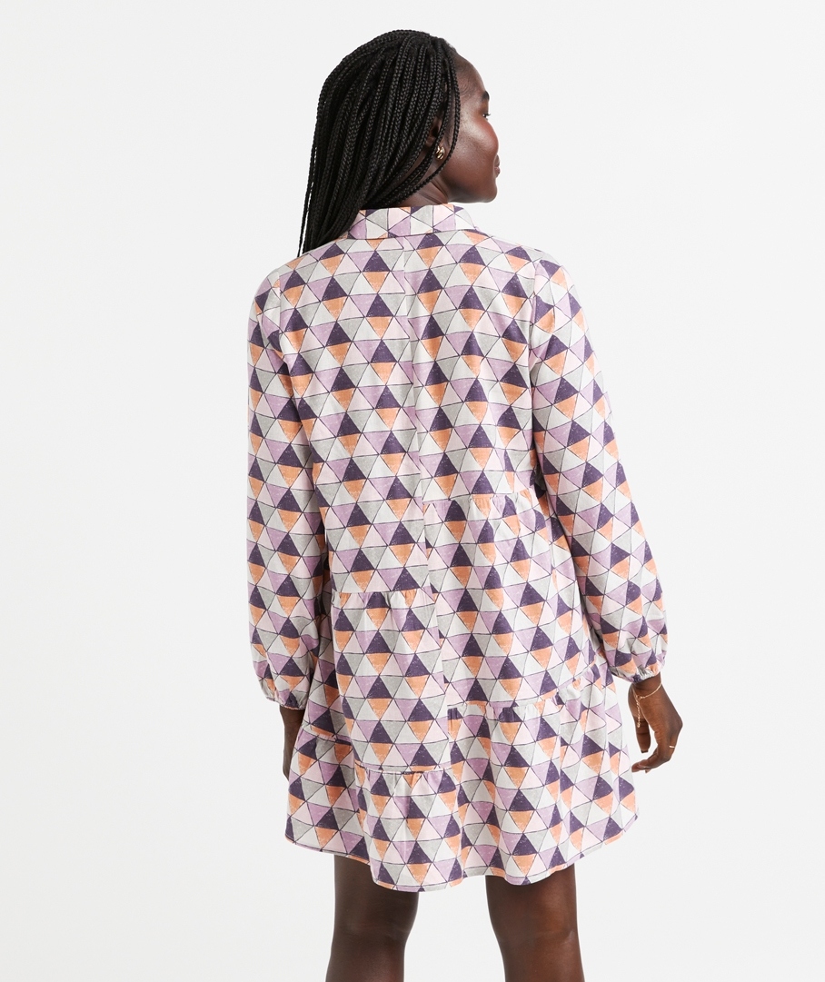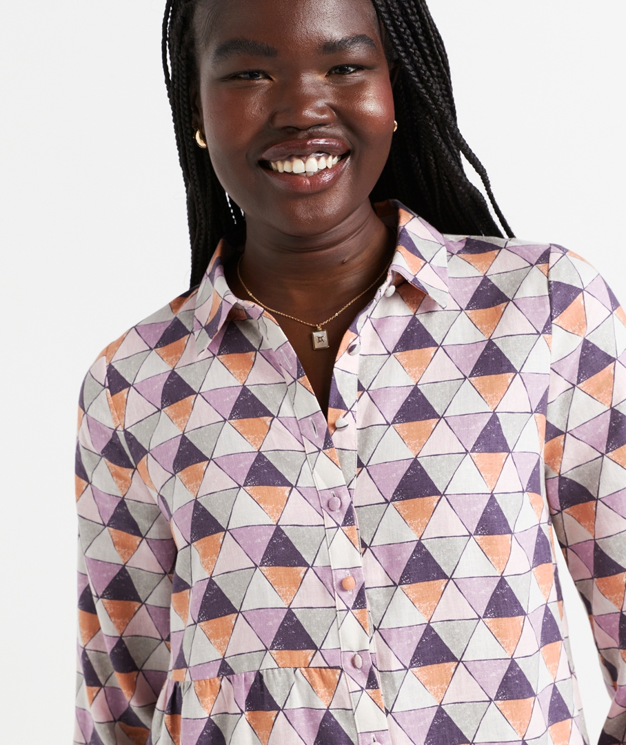 You need to add the Mila Printed Linen Blend Tiered Mini Dress to your wardrobe this season! Designed in a mini length with an eye-catching print, lightweight linen blend fabric, tiered panels, long sleeves, buttons down the front, and a shirt collar. It's the perfect dress to go from day to night. For a day event, wear with boots. For the evening, wear with heels and statement jewellery.
