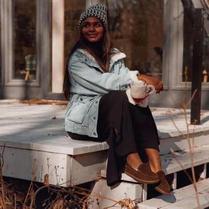 No need to feel tied down when wearing this new take on a classic slipper. Suede mocs lined with cozy pile and finished with a durable indoor-outdoor sole. Perfect for anyone who doesn’t want to sacrifice comfort for their busy schedule.