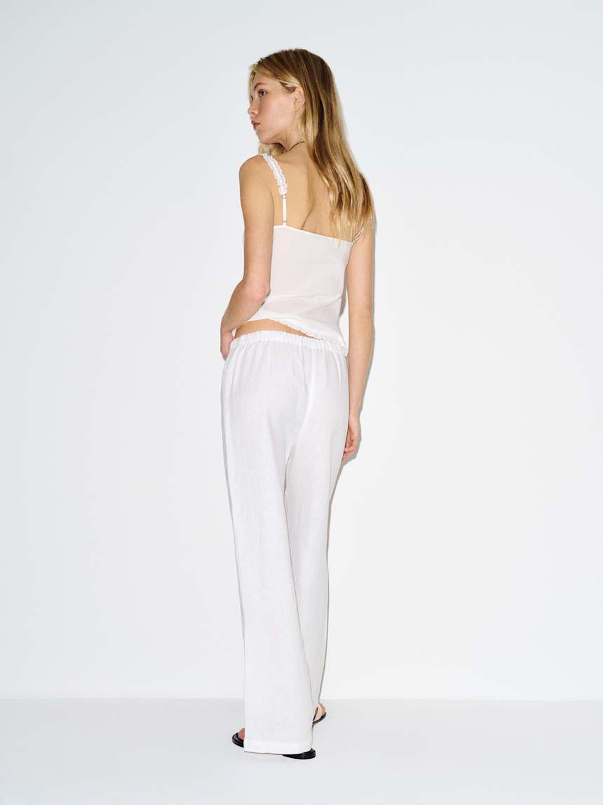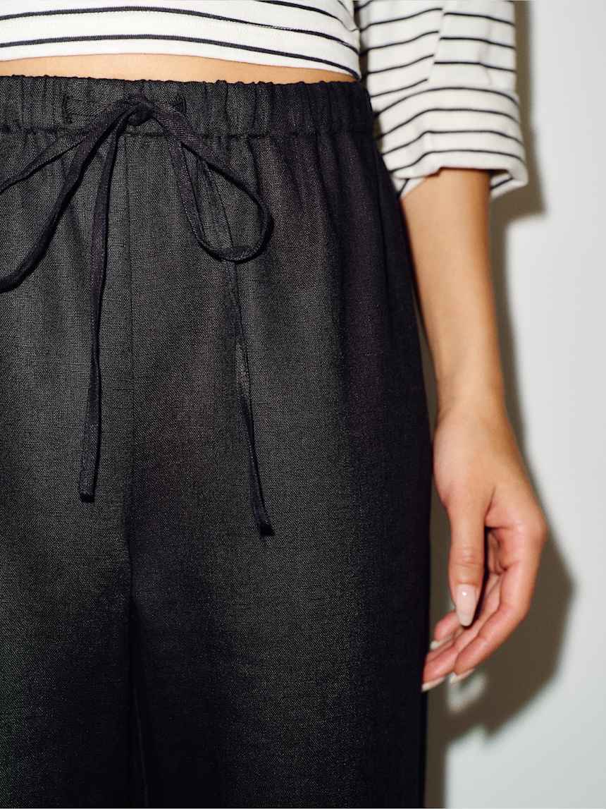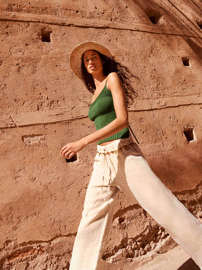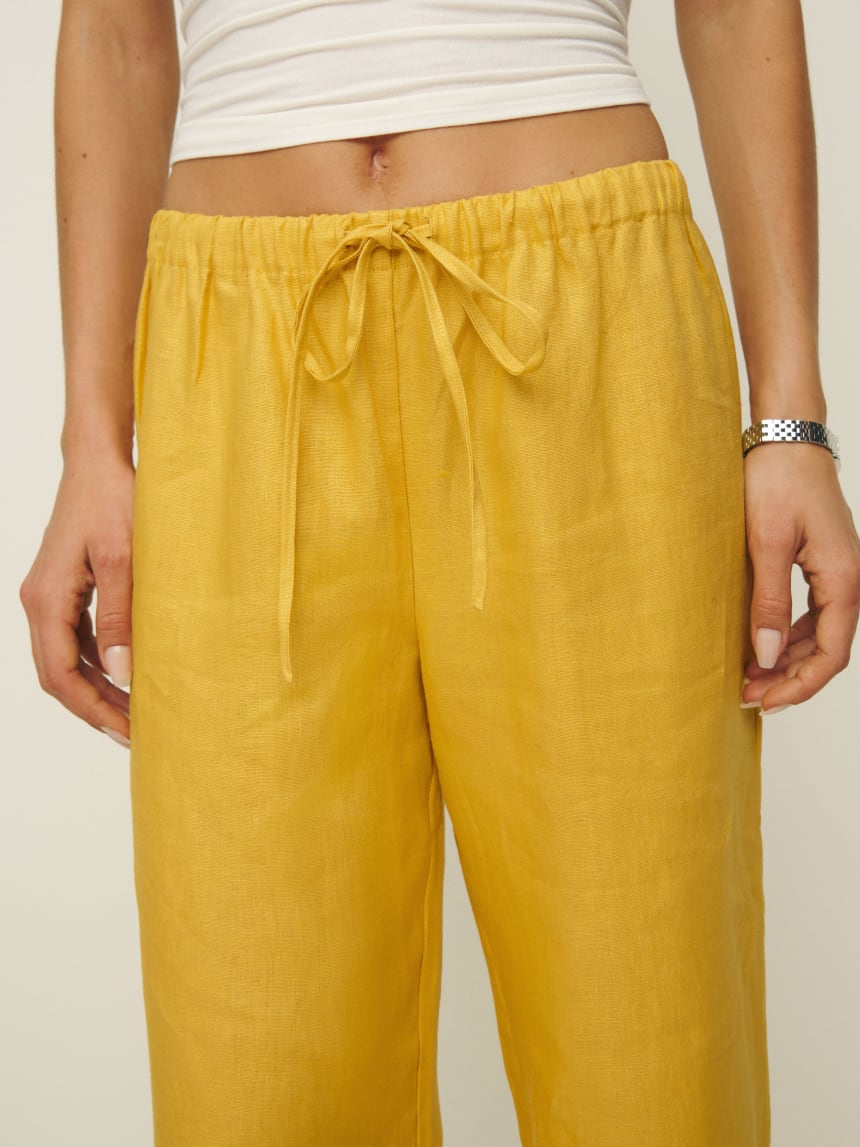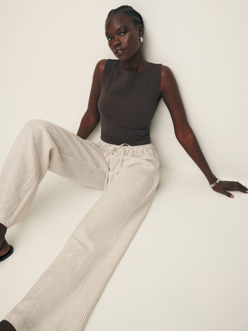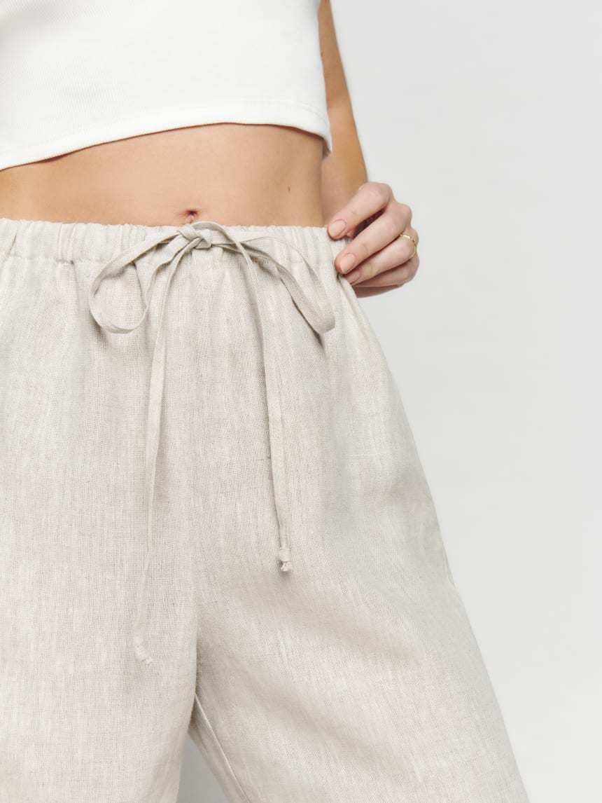 Linen is made from flax. We love flax because it's renewable, grows quickly and has a much lower water footprint than conventional cotton.