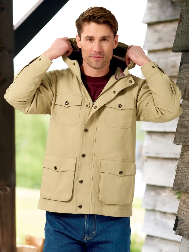 Take this all-weather jacket with you wherever you go! It’s made for everything—chores, errands, even a night out. The casual style features plenty of pockets, including chest, cargo, hand-warmer, and an inner security pocket. A water-repellent shell and soft flannel lining work together to keep you comfortable in all types of weather. Other thoughtful details include a fixed hood, adjustable two-button cuffs, 4 snap side vents, and a two-way front zipper with a snap storm flap. Each snap has a clever loop to make snapping and unsnapping a breeze.