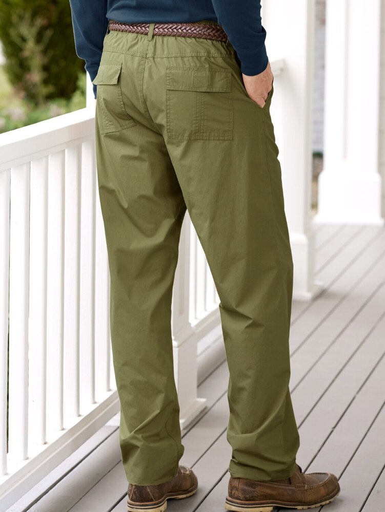 These Orton Brothers® pants are built for comfort and will keep you cool and comfy, whether hiking, strolling, or playing golf. In addition to the lightweight cotton and relaxed fit, they also have an all-around elastic waistband, adjustable drawstring, and roomy legs. Other details include a zip fly with button closure, side-seam pockets, rear patch pockets with self-fastening flaps, and belt loops.Runs large.