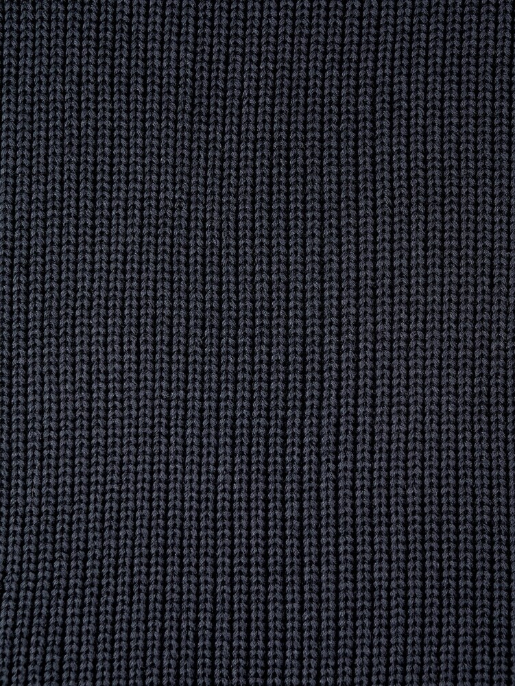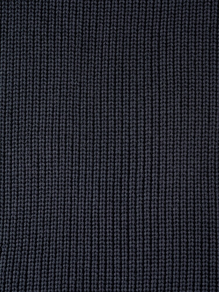 - Rib-knit trim at the neckline, hem, and cuffs
