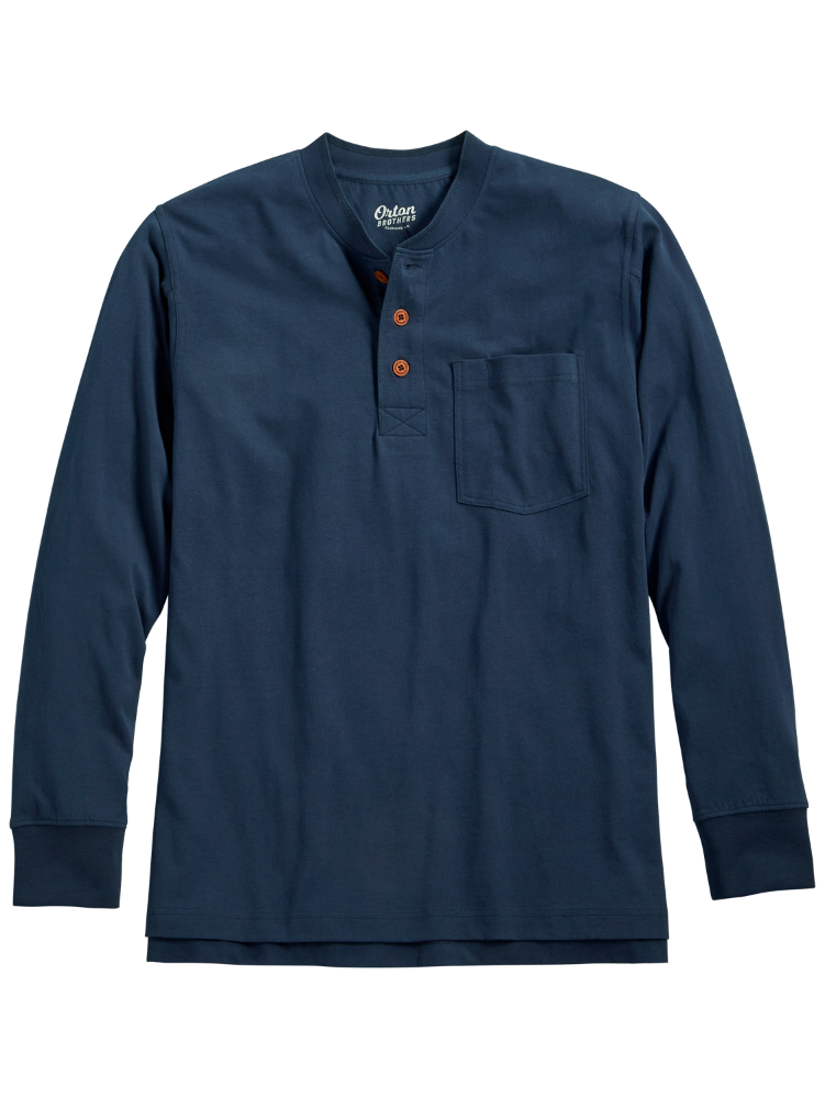 Our all-cotton Henley shirts stays true to the wearability and functionality of the first Henley shirts developed for and worn by English rowers in the 19th century. We added underarm gussets and side slits for enhanced ease of movement and reinforced topstitching for added durability. The jersey knit construction and button-front placket harken back to the original Henley's heritage. Available in a nice assortment of colors, too—you may want several.