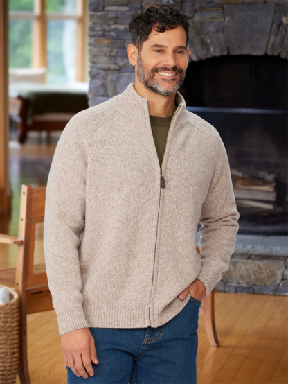 Sure to be your new go-to, this soft, zip-up sweater is the one you'll want to reach for to wear around the house or as a warm layer that will fit under your coat. This authentic ragg wool cardigan is knit with premium lambswool and a touch of nylon to ensure it keeps its shape.